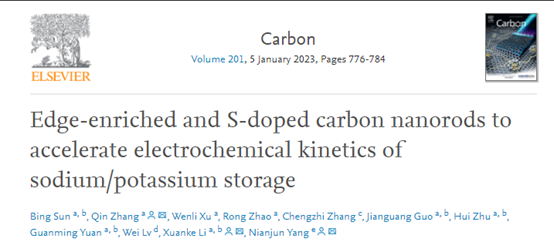 武科大网讯(通讯员李杰 见习记者韩延通)近日,我校化学与化工学院张琴副教授团队的研究论文“Edge-enriched and S-doped carbon nanorods to accelerate electrochemical kinetics of sodium/potassiumstorage”在《Carbon》期刊发表。张琴和孙兵为第一作者,李轩科、张琴、杨年俊为通讯作者,我校化学与化工学院煤转化重点实验室为论文第一单位。