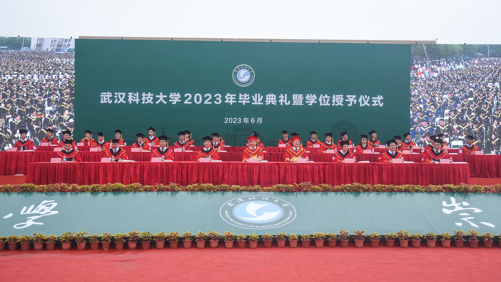武科大网讯(记者张虎琛)6月18日上午,我校在黄家湖校区南园体育场隆重举行2023年毕业典礼暨学位授予仪式。校党委书记徐雁冰、校长倪红卫等全体校领导出席活动。校党委副书记孙国胜主持毕业典礼。教师、校友及毕业生家长代表齐聚现场,共同见证八千多名学子的毕业时刻。
