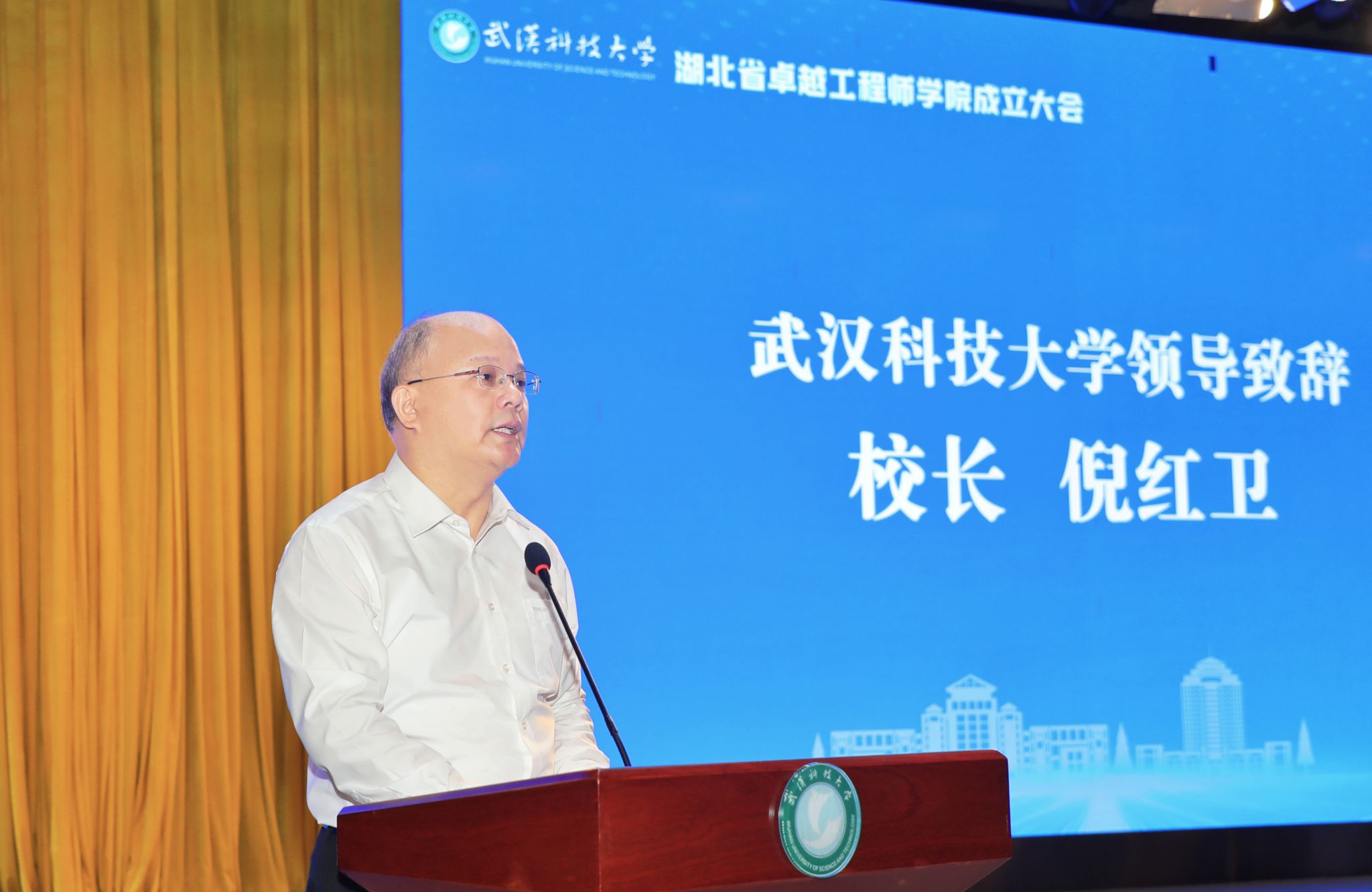 倪红卫代表全体师生员工,向关心支持学校建设发展的上级部门领导和社会各界人士表示衷心感谢,向莅临大会的来宾表示热烈欢迎。倪红卫表示,作为首批湖北省卓越工程师学院试点建设高校,学校肩负着树标杆、作示范的使命与责任。要高质量建好卓越工程师学院,必须高度重视,加强顶层设计,精心谋划“路线图”;要聚力合作,发挥校企优势,认真落实“施工图”;要改革创新,优化运行机制,全力打造“样板间”;要围绕目标,强化质量保障,助推当好“排头兵”。学校将牢牢抓住我省加快建设全国构建新发展格局先行区的重要战略机遇,建好建强湖北省卓越工程师学院,打通教育链、人才链和创新链、产业链有机衔接的“最后一公里”,培养一大批卓越工程师,更好的服务我省经济社会发展。