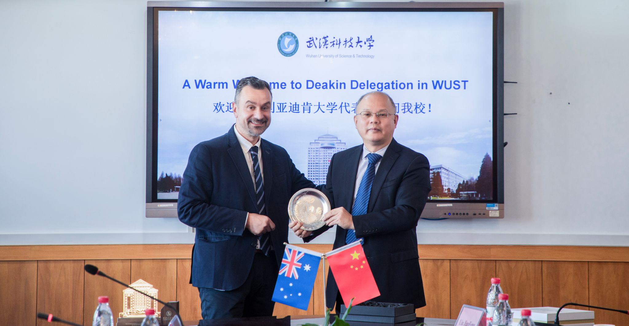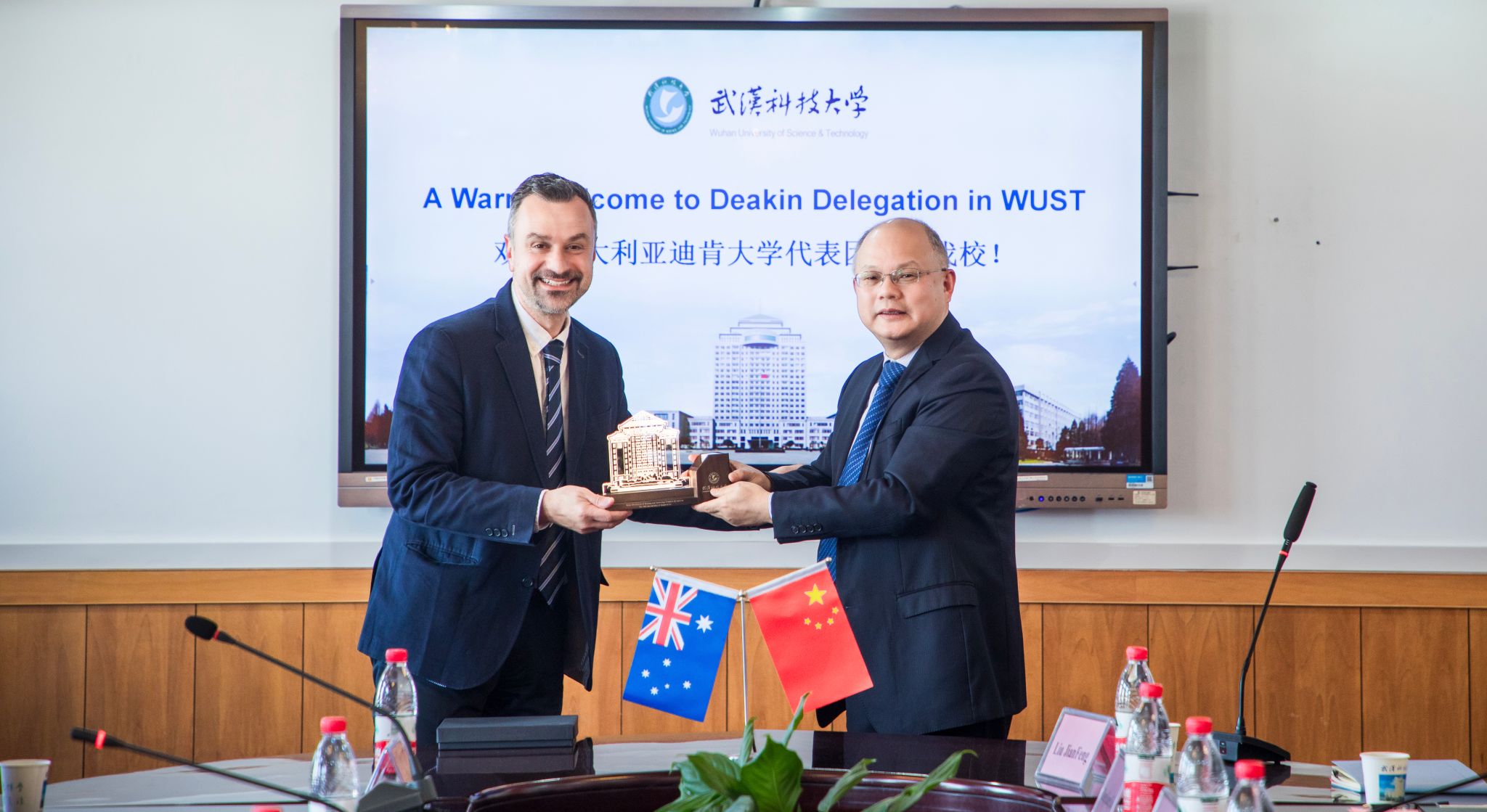 武科大网讯 11月14日,澳大利亚迪肯大学副校长Nick Birbilis率代表团访问我校,校长倪红卫会见代表团一行并座谈。校党委副书记孙国胜参加会议。