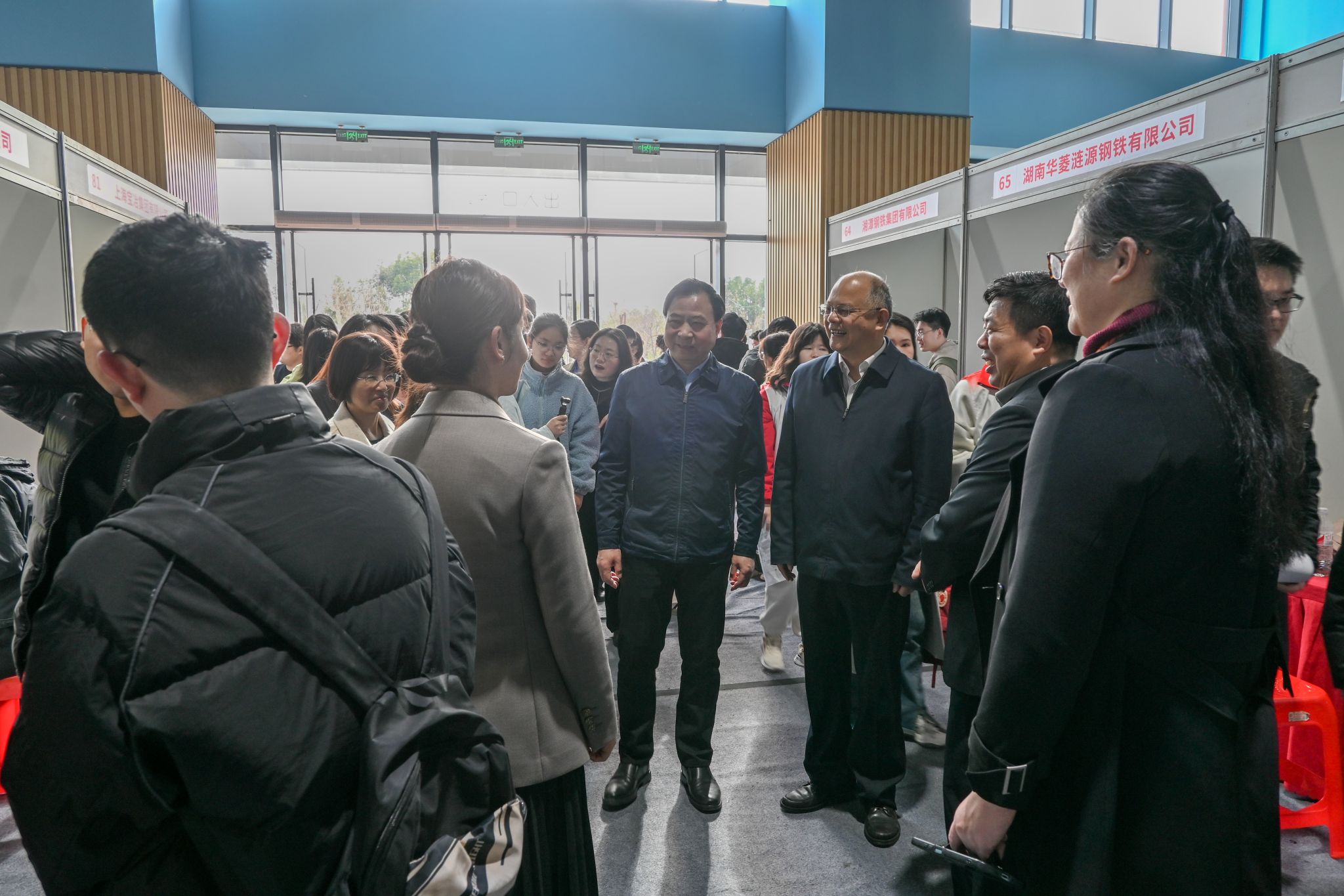 校长倪红卫、校党委副书记孙国胜亲临招聘会现场,与用人单位深入交流,介绍学校人才培养特色,了解企业招聘需求,并征询其对学校人才培养和就业服务的意见建议。他们还亲切询问毕业生的求职情况,鼓励毕业生们充分准备,积极应聘。