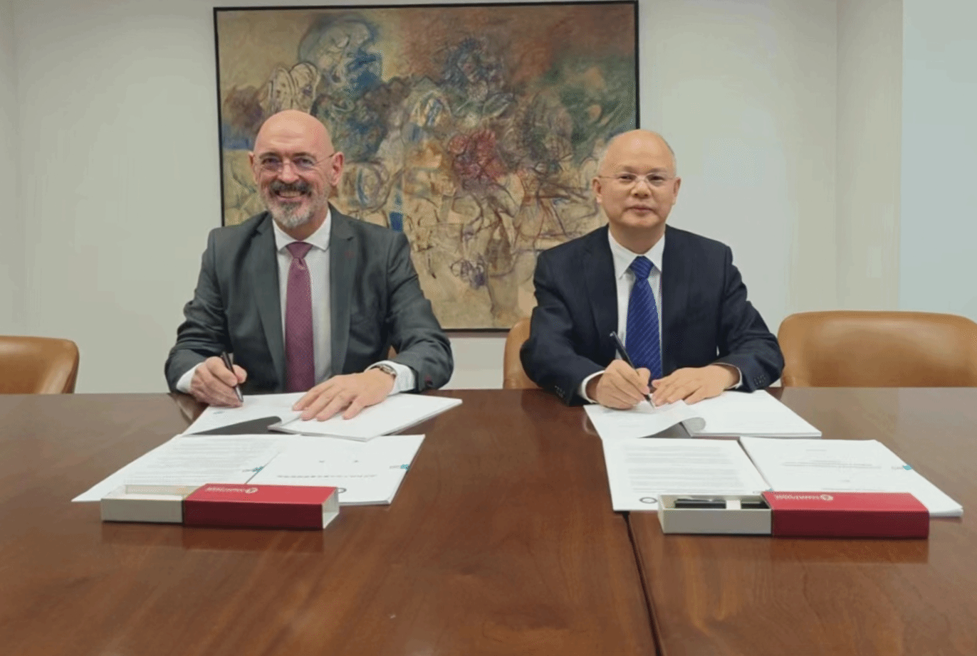 倪红卫访问西班牙期间,西班牙马德里康普顿斯大学校长华金⸱戈亚契⸱戈尼、办公室主任安娜·玛丽亚·基罗加·雷伊、国际交流处处长胡安·卡洛斯·伊斯基耶多参与了会见。华金代表康普顿斯大学欢迎倪红卫一行的到访,感谢我校在过去一年中对中外合作办学机构申报工作付出的努力,非常高兴能在西班牙马德里康普顿斯大学设立两校文化交流中心。