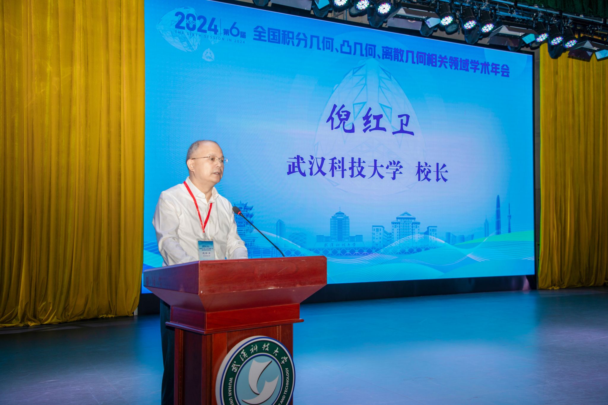 武科大网讯(记者宋钦 陈孖川)10月11—12日,第六届全国积分几何、凸几何、离散几何相关领域学术年会在我校举办。中国科学院院士张伟平、中国数学会副理事长苑立平、湖北省暨武汉数学会理事长陈化、纽约大学张高勇教授出席大会开幕式。我校校长倪红卫出席并致辞,副校长吕勇主持。