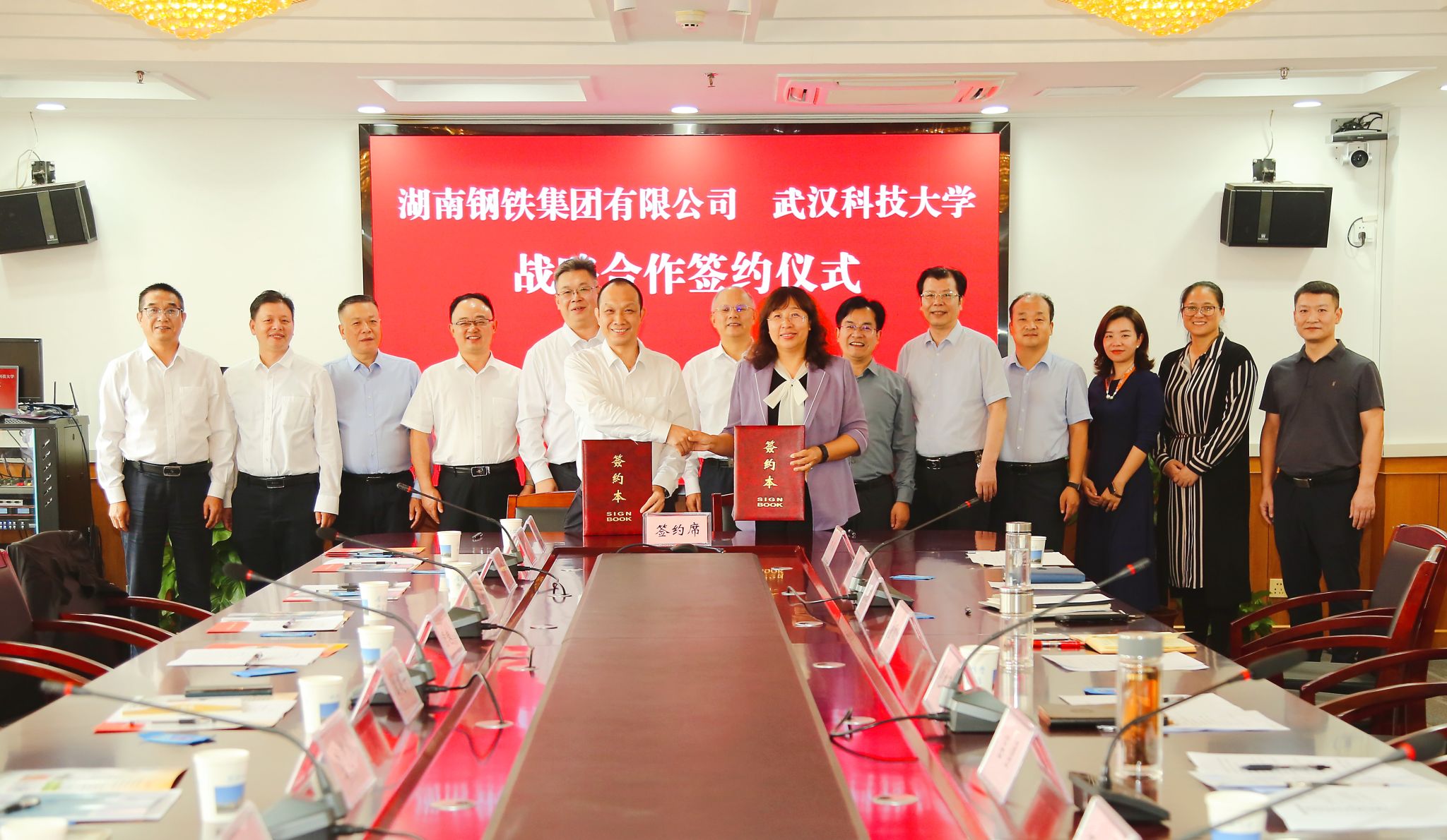武科大网讯(记者李芳)10月15日,湖南钢铁集团有限公司党委书记、董事长李建宇一行到访我校并与我校签订战略合作协议,双方将进一步深化在科学研究、科研成果转化等方面的合作,为我国钢铁行业的发展作出更大贡献。校党委书记徐雁冰会见李建宇一行,校长倪红卫出席签约仪式。湖南钢铁集团有限公司党委副书记曾顺贤、校党委副书记孙国胜、副校长吕勇、董丽杰出席活动。曾顺贤和董丽杰代表双方签订战略合作协议。