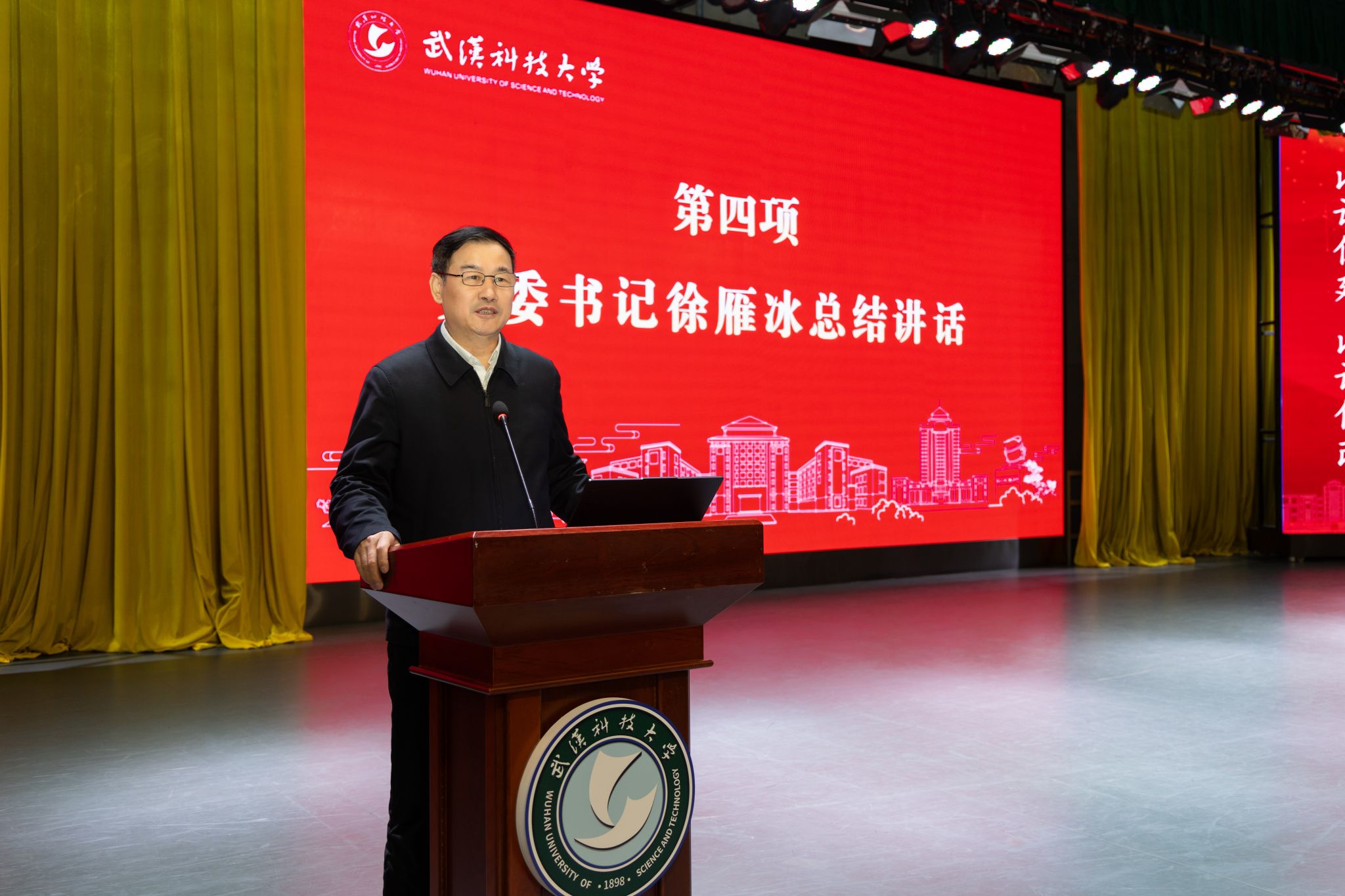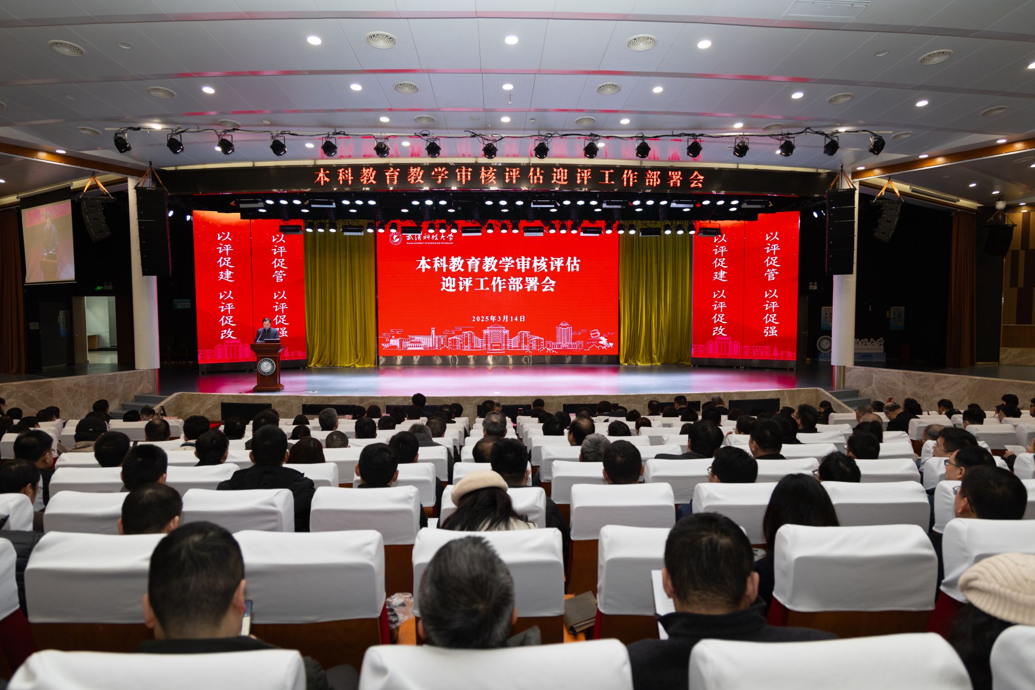 武科大网讯(通讯员邓小龙)3月14日,学校在青山校区碧园会堂召开本科教育教学审核评估迎评工作部署会,对决胜本科教育教学审核评估“攻坚战”再动员、再部署、再鼓劲。党委书记徐雁冰出席会议并讲话,校长倪红卫部署审核评估重点工作,副校长吕勇介绍迎评工作方案。会议由党委副书记孙国胜主持。
