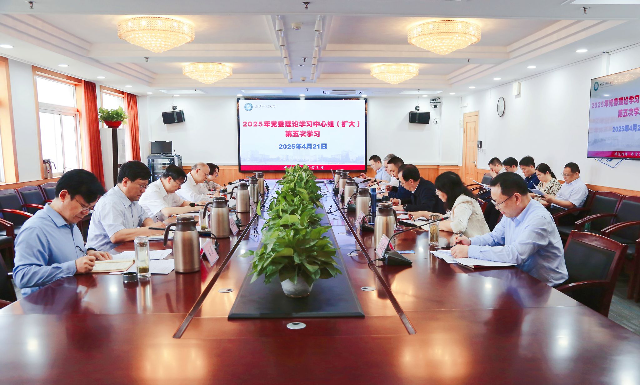 武科大网讯 4月21日,学校在青山校区主楼1610会议室举行2025年党委理论学习中心组(扩大)第五次学习。党委书记徐雁冰主持学习会议并讲话。党委副书记、校长倪红卫和全体在校校领导参加学习。