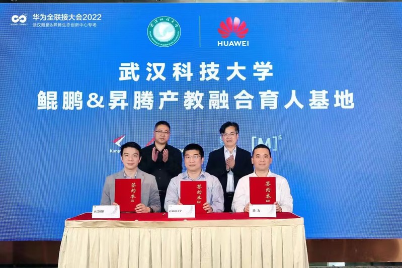 武科大网讯 11月9日,华为全联接大会2022武汉鲲鹏昇腾生态创新中心分会活动在武汉举办。我校与华为、长江鲲鹏生态创新中心共同签署“鲲鹏&昇腾产教融合育人基地”合作协议并揭牌,就构建特色课程内容、打造师资队伍、建设先进的教学实训平台、培养高质量的产业人才进行全方位的合作。副校长吕勇出席会议并致辞。