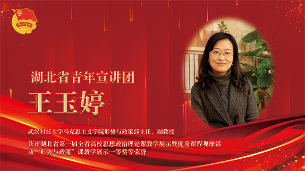 武科大网讯(通讯员周习海 记者叶显伟) 近日,团省委选拔组建湖北省学习贯彻二十大精神青年宣讲团,开展党的二十大精神宣讲工作。我校团委书记刘晓云,马克思主义学院副院长刘文波、形势与政策部主任王玉婷,法学与经济学院团委书记何金四名教师入选,并陆续在市(州)、直属企业和高校开展宣讲。