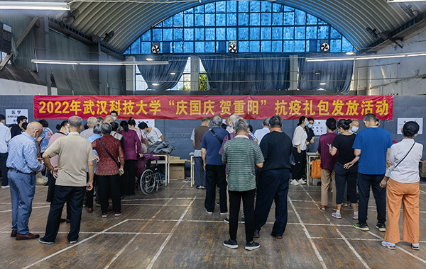 武科大网讯 9月29日,学校隆重举行“庆国庆、贺重阳” 抗疫礼包发放活动,让离退休老同志过一个健康、祥和的重阳节,倡导全校推崇“尊老敬老、爱老助老”的新风尚。