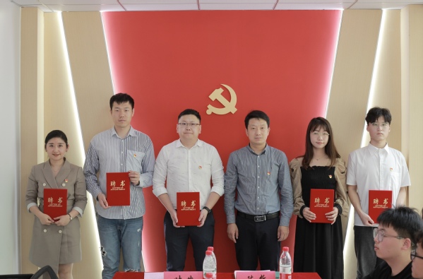 张明汇报党员工作站的建设及党员下沉工作的具体开展情况。他表示,每周会派一名党员教师前往黄家湖校区学生工作站开展党员下沉活动,帮助学生了解专业前沿领域知识,明确大学学习方向,解答学生困惑。曹伟为“一站式”学生社区党员工作站站长、副站长发聘任证书。