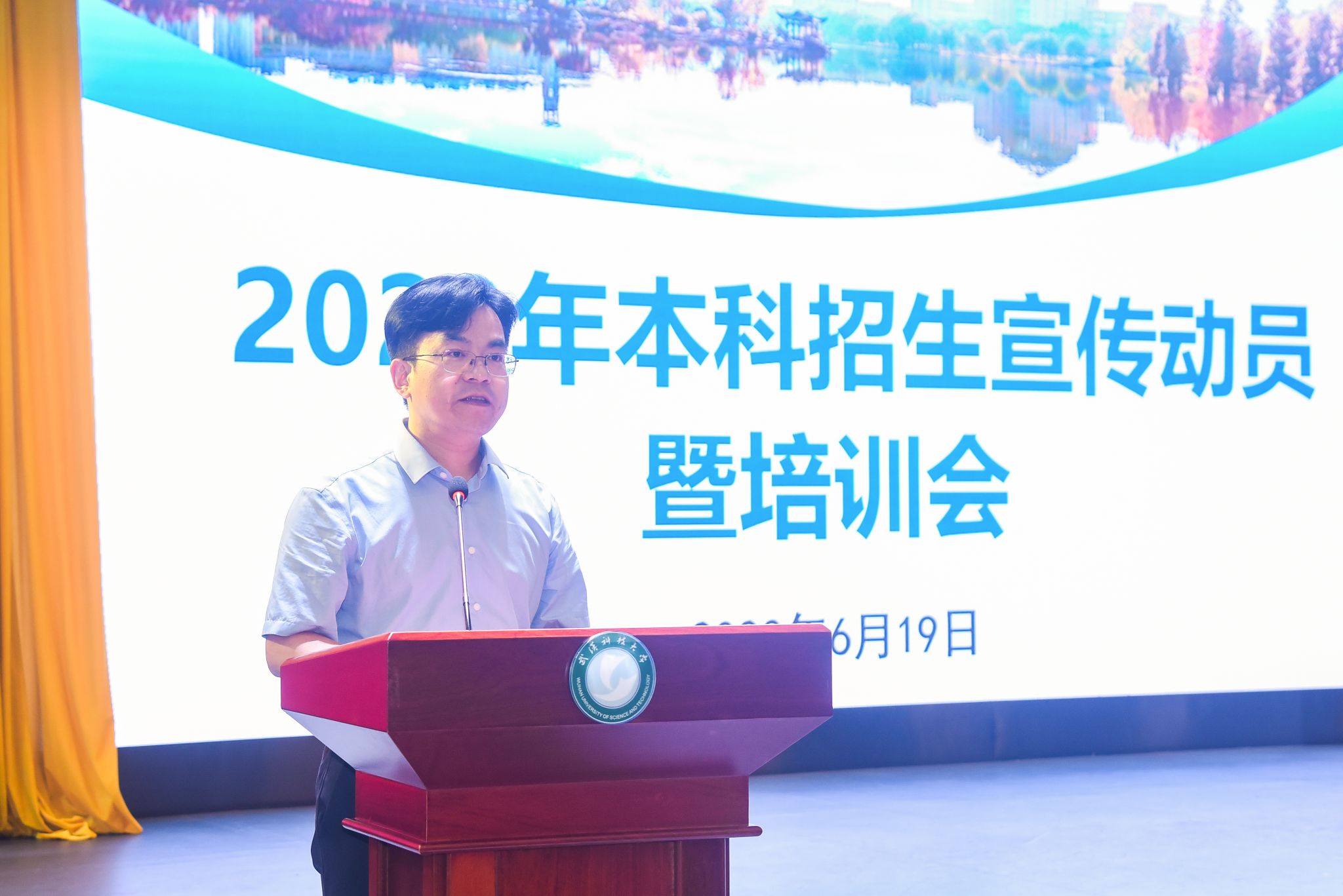 会上,本科招生办公室主任朱明从湖北省招生政策解读、我校基本情况及主要招生政策、常见问题及注意事项和工作要求等方面对招生宣传员进行培训。
