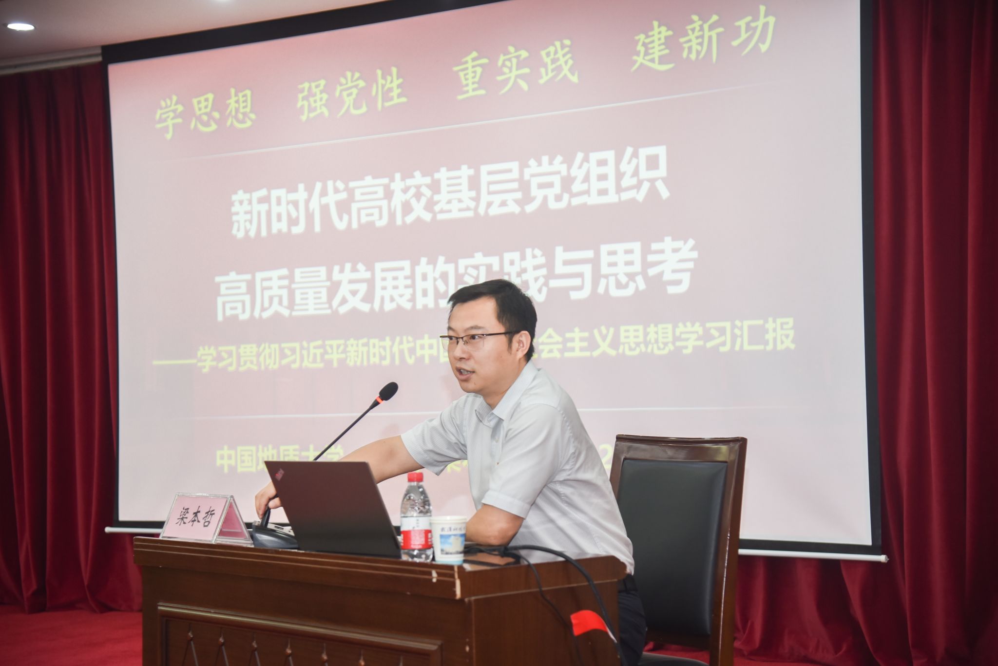 中国地质大学(武汉)材料与化工学院党委书记梁本哲,从“学、思、践、悟”四个维度,阐述了党和国家对高校基层党组织提出的新期望,新时期基层党组织创新实践的新思路,分享了党建“双创”的“地大经验”。