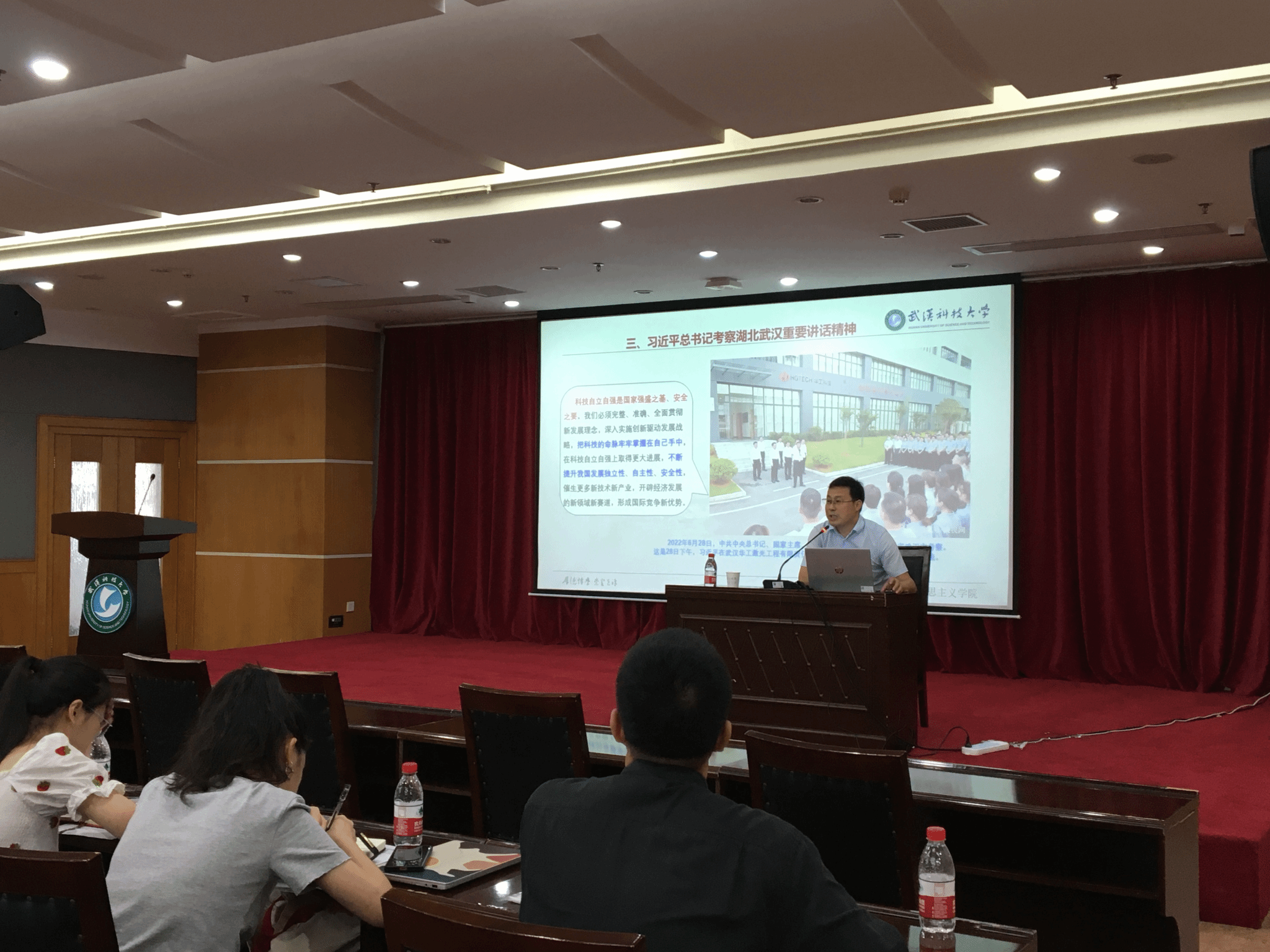法学与经济学院教授张继才讲授《百年艰苦奋斗、百年薪火相传——武科大百年历史文化积淀及启示》。今年是学校办学125周年,张继才教授带领全体教师学习学校百余年的丰富历史底蕴,厚植教育强国、科技报国情怀。同时,全体新入职教师集体观看了教师专题教育片,参观了张之洞文献馆、廉园,签订了师德师风承诺书。