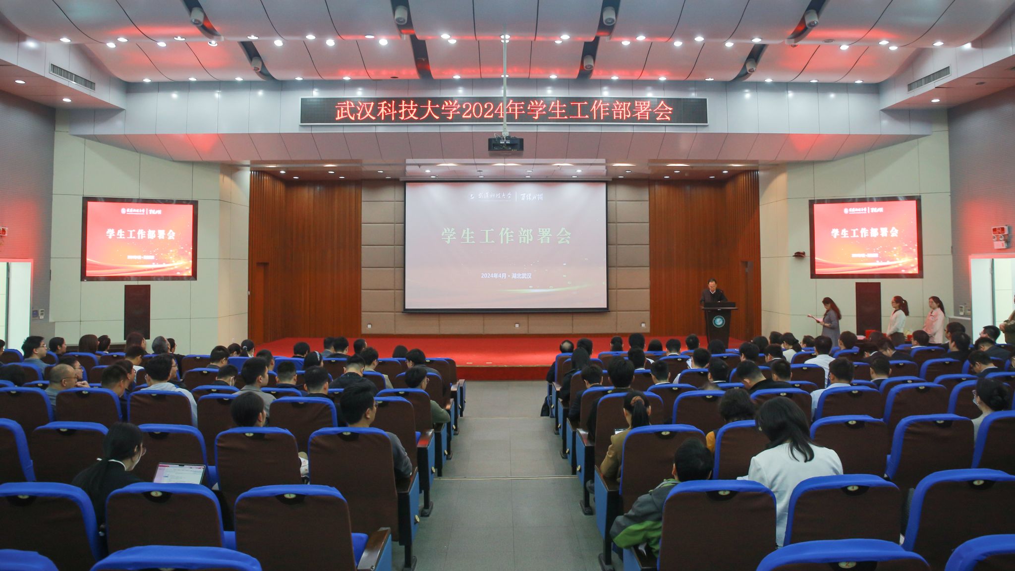 武科大网讯(记者覃宇 摄影叶显伟)4月10日,学校2024年学生工作部署会在崇实会堂召开。校党委副书记孙国胜讲话,副校长马腾宣读表彰决定。