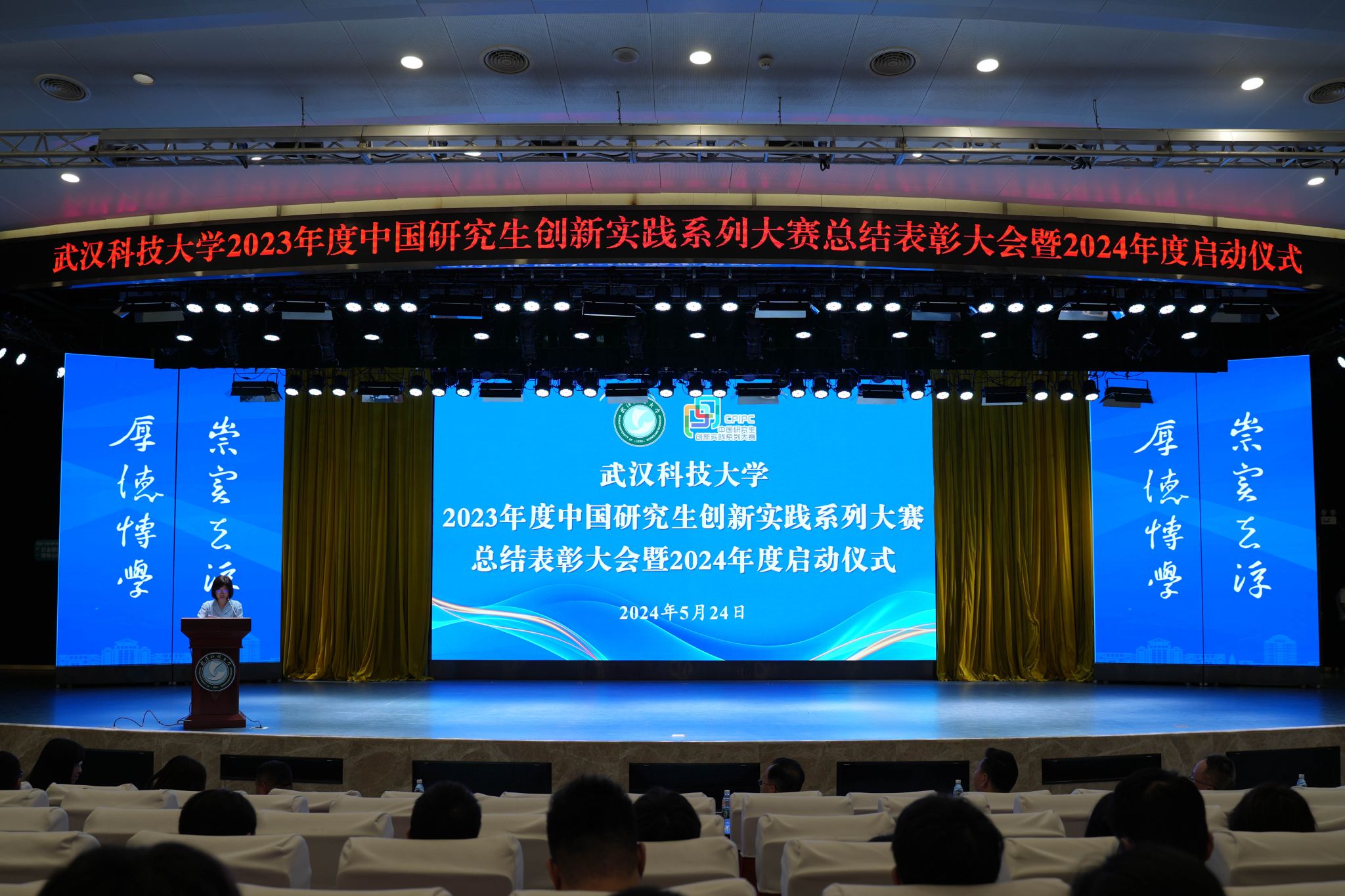 武科大网讯(通讯员崔宇航 沈默 李轲 周毅 黄雪航 张馨元)5月24日下午,我校2023年度中国研究生创新实践系列大赛总结表彰大会暨2024年度启动仪式在青山校区碧园会堂举行。副校长马腾,党委研工部部长冒颖、副部长毛宝胜,团委副书记陈文思、创新创业学院副院长汪汝武,各研究生培养单位科创工作负责人,研究生辅导员,竞赛指导教师代表和研究生代表等出席会议。