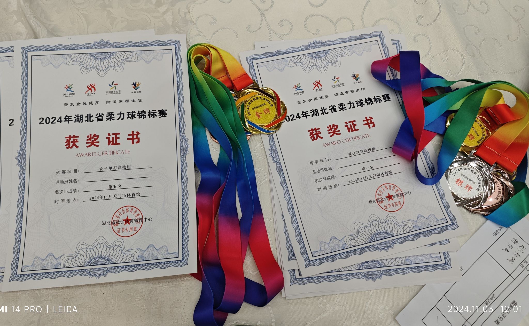 在花式柔力球项目中,我校取得单人自编套路高校组第一名,集体规定套路高校组第一、二名;在网式柔力球项目中,我校取得混合双打高校组第一、二、三名,女子单打高校组第四名和第五名。
