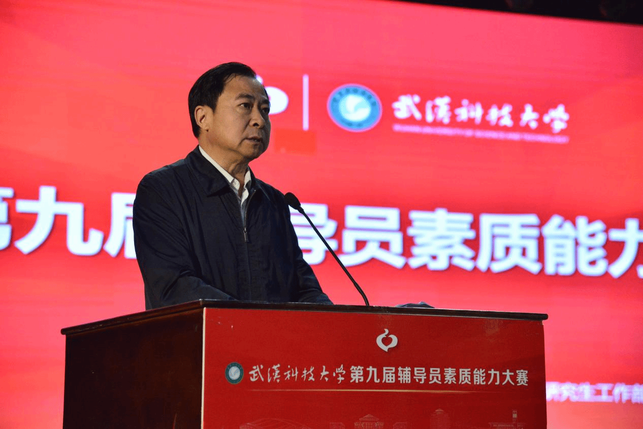 武科大网讯(通讯员郭欣怡)11月15日上午,我校第九届辅导员素质能力大赛(决赛)在黄家湖校区沁湖礼堂举行。校党委副书记孙国胜出席,华中师范大学党委学生工作部副部长、思政处处长李刁,武汉理工大学学生工作部部长谢中清,2022年最美高校辅导员、中南财经政法大学工商管理学院党委副书记尼加提·艾买提,学校机关党委书记、党校副校长、组织部副部长郑永松,党委学生工作部部长潘丽莎,党委研究生工作部部长郑娟,团委书记王媛媛担任评委,相关职能部门领导、各学院党委副书记、全体辅导员到场观摩。
