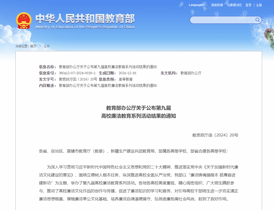 武科大网讯 近日,教育部公布了第九届高校廉洁教育系列活动评选结果。由我校法学与经济学院杜逸涵等报送的作品《打造红色班级“许白昊班” 以红色基因传承清廉血脉》入选课堂实践案例遴选名单。