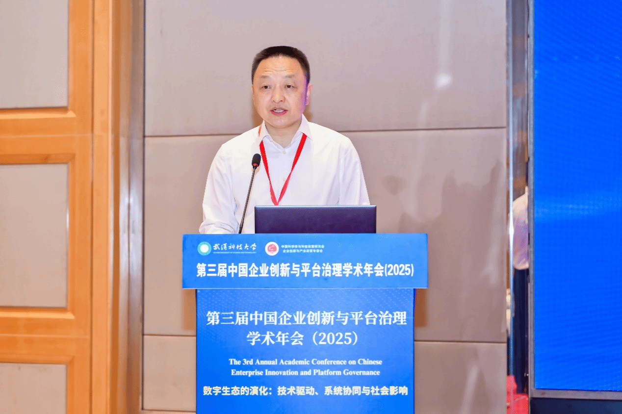 武科大网讯 5月17-18日,由中国科学学与科技政策研究会企业创新与产业政策专委会主办的第三届中国企业创新与平台治理学术年会(2025)在湖北武汉举办,来自全国各地的三百余位学者、研究生及行业专家参会。我校副校长陈志刚出席并致辞。会议开幕式由我校管理学院执行院长刘海兵主持。