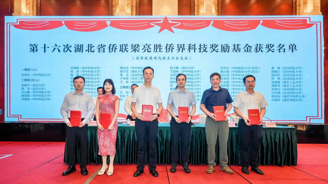 武科大网讯 6月27日,第十九届全省高校、科研院所、大型企事业单位侨联工作推进活动在武汉举行。活动现场揭晓了第十六次“梁亮胜侨界科技奖励基金”获奖名单,我校5位教师榜上有名。其中,材料学部徐光教授获二等奖;材料学部黄奥教授、胡海江教授,医学部曾燕教授,生命科学与健康学院张同存教授获三等奖。