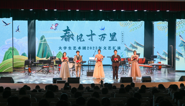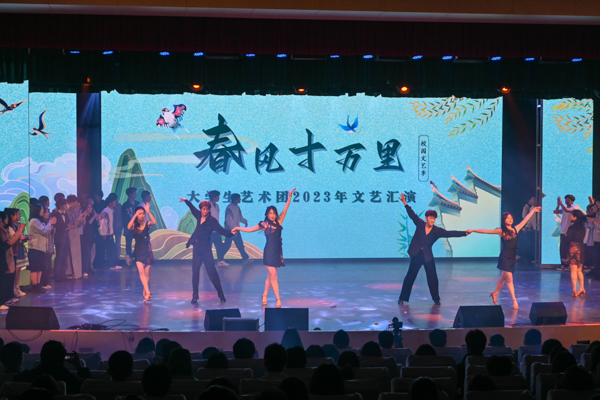 为展现大学生青春活力,给校园增添更多文化气息,我校大学生艺术团于4月8日在沁湖礼堂举办《春风十万里》文艺汇演。经过多日排练,最终给观众带来11个节目,包含器乐合奏、拉丁舞、街舞、古典舞、流行唱、小品等形式。每个节目都十分精彩,观众的惊叹声此起彼伏。中场环节,“猜歌名接下句”小游戏带动全场观众参与,氛围满满。相信随着校园文艺节的带动,武科大学子的生活能够更加精彩美好!(黄宏杰)
