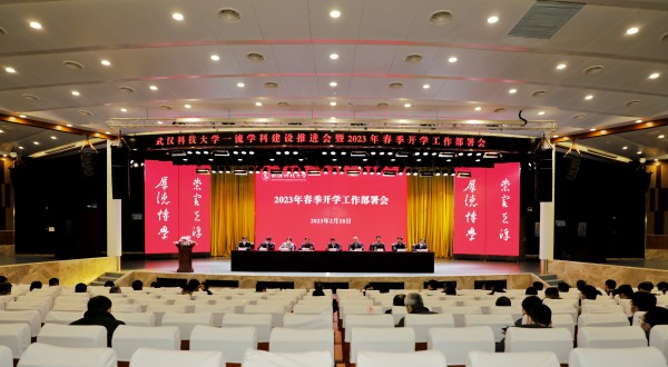 武科大网讯(记者陈孖川)2月18日下午,学校在青山校区碧园会堂召开春季开学工作部署会。全体校领导,全校副处级及以上领导干部,具有硕士、博士学位授予权的一级学科负责人参加会议。校党委书记徐雁冰主持会议并讲话。