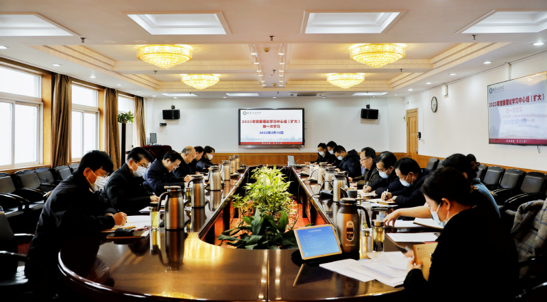 武科大网讯 2月10日下午,学校在青山校区主楼1610会议室举行2023年党委理论学习中心组(扩大)第一次学习,党委书记徐雁冰主持会议并讲话,全体党委常委参加学习。党政办公室、纪委、监察专员办公室、党委宣传部、后勤保障部、附属老年病医院等部门负责同志列席学习会议。