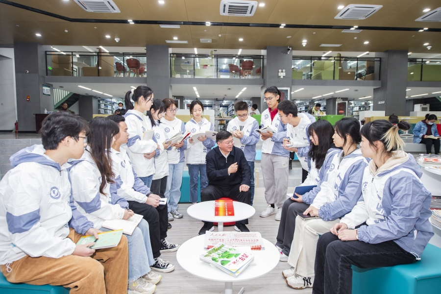 宣讲结束后,桂建芳前往青山校区图书馆二楼与我校学子交流,鼓励学生要努力学习、勤奋钻研,在科研上走得更远、做得更深。