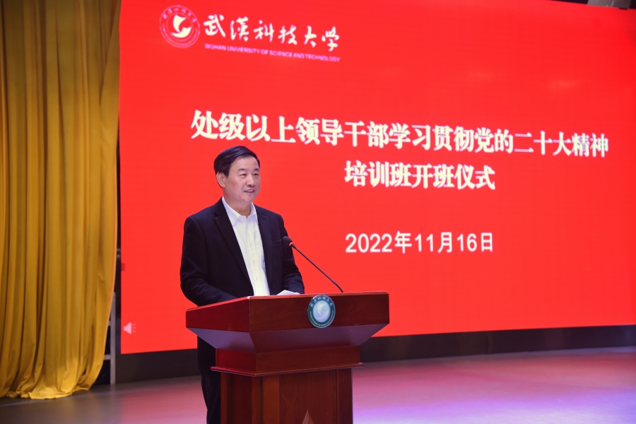 武科大网讯(记者陈孖川)11月16日上午,学习贯彻党的二十大精神湖北省委宣讲团报告会暨处级以上领导干部学习贯彻党的二十大精神培训班开班仪式在青山校区碧园会堂举行。省委宣讲团成员、中国科学院院士、发展中国家科学院院士桂建芳院士作题为《学习党的二十大精神,自信自强、守正创新,为党育人、为国育才,做科教兴国的主力军》的宣讲报告。校党委书记徐雁冰主持会议。