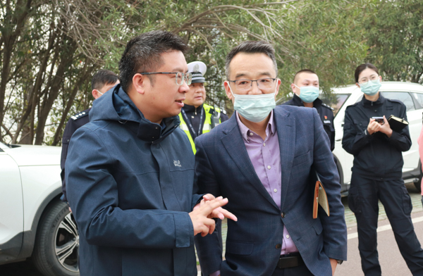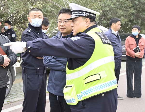 领导讨论武科大东门环湖交通状况 杨佳伟摄