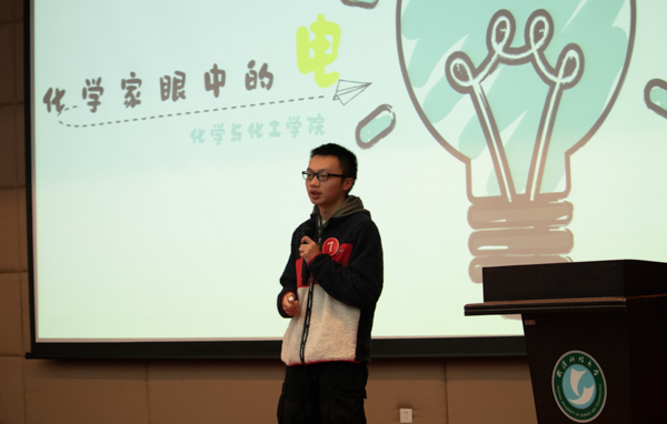 为引导和激励我校学生实事求是、刻苦钻研、勇于创新、多出成果、提高素质,培养我校学生创新精神和实践能力,并在此基础上促进我校学生课外学术科技活动的蓬勃开展,发现和培养一批在学术科技上有作为、有潜力的优秀人才,我校特举办此次科协杯。3月23日晚,科协杯于我校图书馆二楼崇实会堂举办。参与活动的有邱江华、胡静、孙伟、祝能四位评委老师,还有包括资环学院、医学院、香涛学院在内的18个学院的参赛队伍,以及相关部门的工作人员。在参赛选手认真的讲解、以及评委老师的点评中,部分队伍获奖,其中医学院获得特等奖并获得评委老师的较高评价。(杨佳伟)