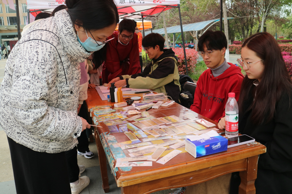 为提高在校师生的文化素养和审美修养,培养广大学生艺术兴趣和爱好,促进师生共同感受传统文化之美,3月25日,我校懿行国学社、潇湘雨诗词协会、笛箫艺术协会、书画艺术协会、摘星棋社、汉文化社、红楼梦协会、图书馆读者协会等八个传统文化社团于南园食堂前,开展了2023年度八协文化周活动。(金如梦 熊雄)