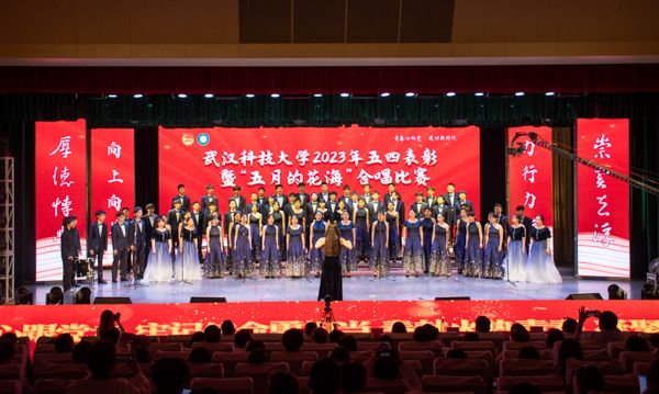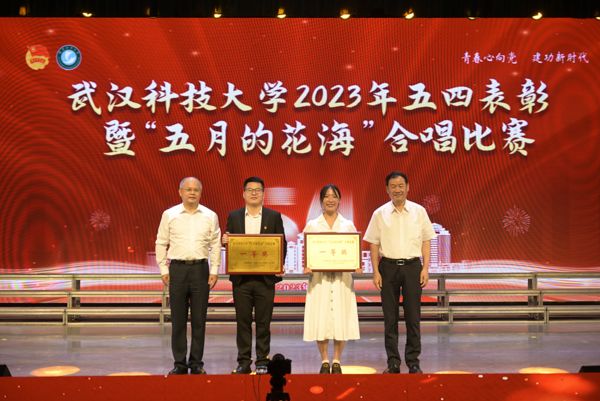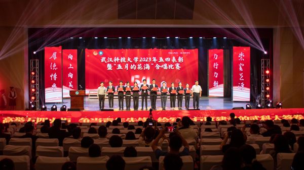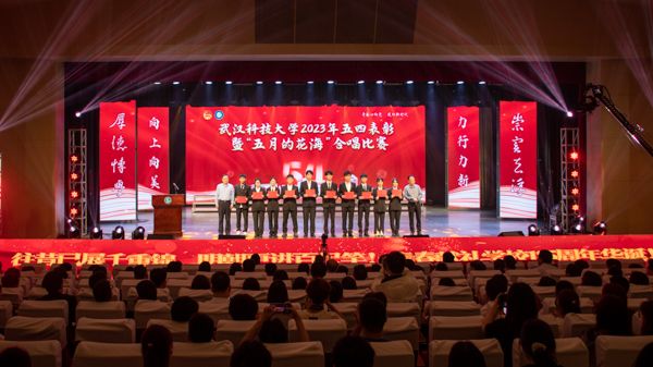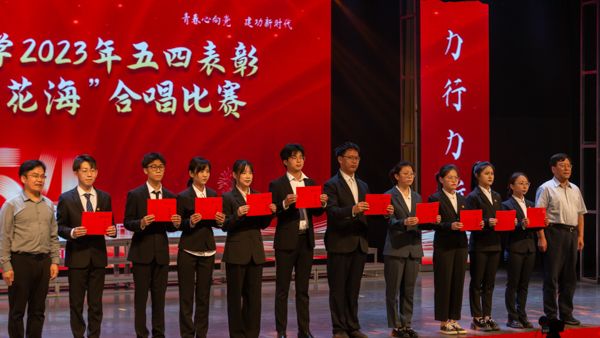 5月4日晚,我校于黄家湖校区沁湖礼堂举办2023年度五四表彰暨“五月的花海”合唱比赛,全体在校校领导出席活动并为“优秀共青团员”“模范共青团干部”“五四红旗团支部”“十大魅力学子”“五四红旗团委”颁奖。获奖个人代表袁鑫和获奖集体代表章健宇发言。“五月的花海”合唱比赛由17支队伍进行演唱,最终材料与冶金学院和管理学院获得一等奖。(王政全 熊雄)