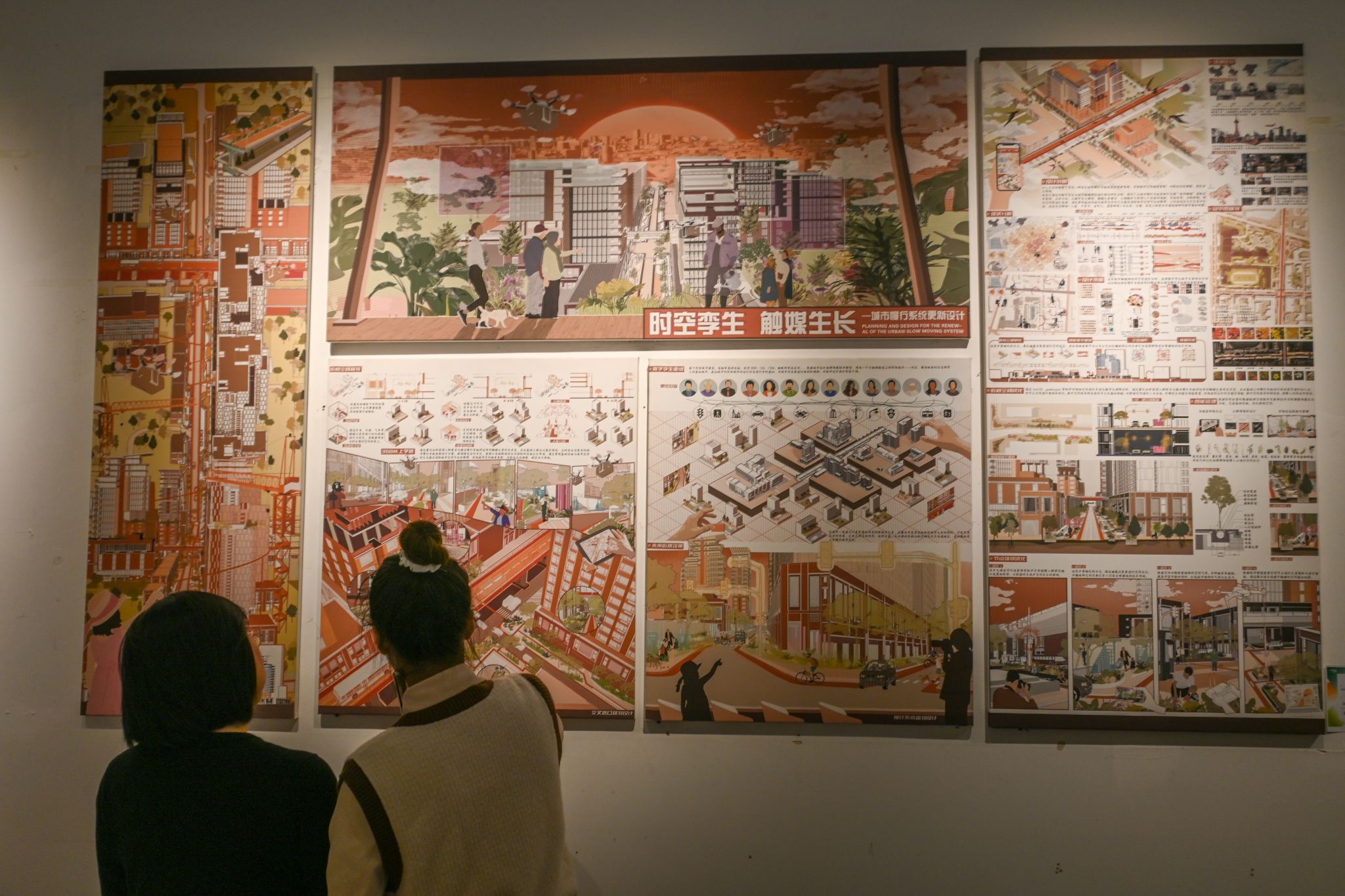 学生给参观者介绍作品《时空孪生 触媒生长》 黄宏杰摄