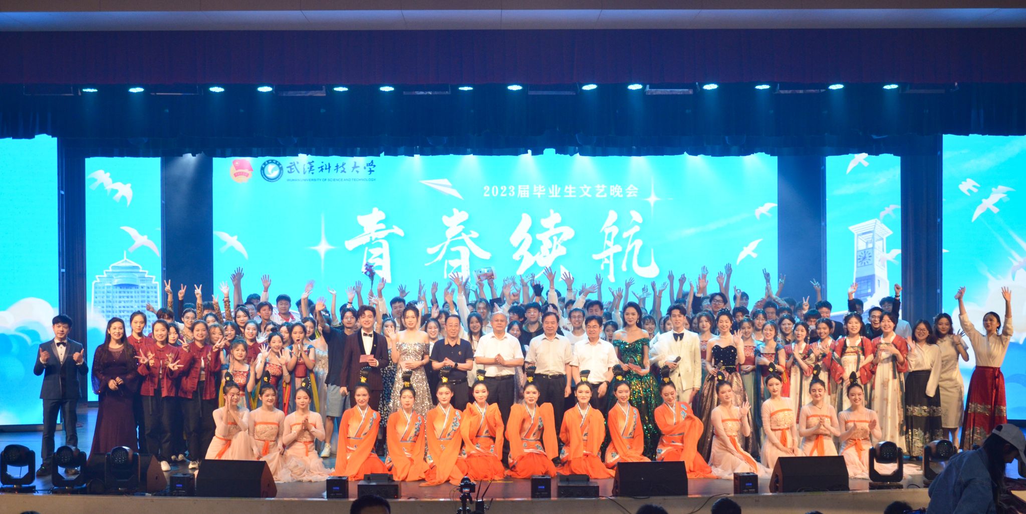 6月18日晚,为欢送我校毕业生,我校于沁湖礼堂举办2023届青春续航毕业生晚会。《盛世国乐》拉开了晚会的帷幕。晚会共分为三个篇章。第一篇章为《沁水青山初相遇》,节目为拉丁舞《绽》、沁湖之声合唱团带来的《Fly to the moon》以及魔术表演《梦回沁湖畔》。第二篇章为《星河为路·展风华》,节目有舞蹈《千年画卷》、相声《校园杂谈》、诗朗诵《是你,是我》以及沁湖之声合唱团带来的《启程》。第三篇章为《此去乘风·铸梦想》,节目有小品《请回答2019》、舞蹈《漆奁楚女图》、歌曲《月亮舞台》以及舞蹈《Now Ready Go》。最后晚会结束,众人合影留念。(梁绮琪 王政全)