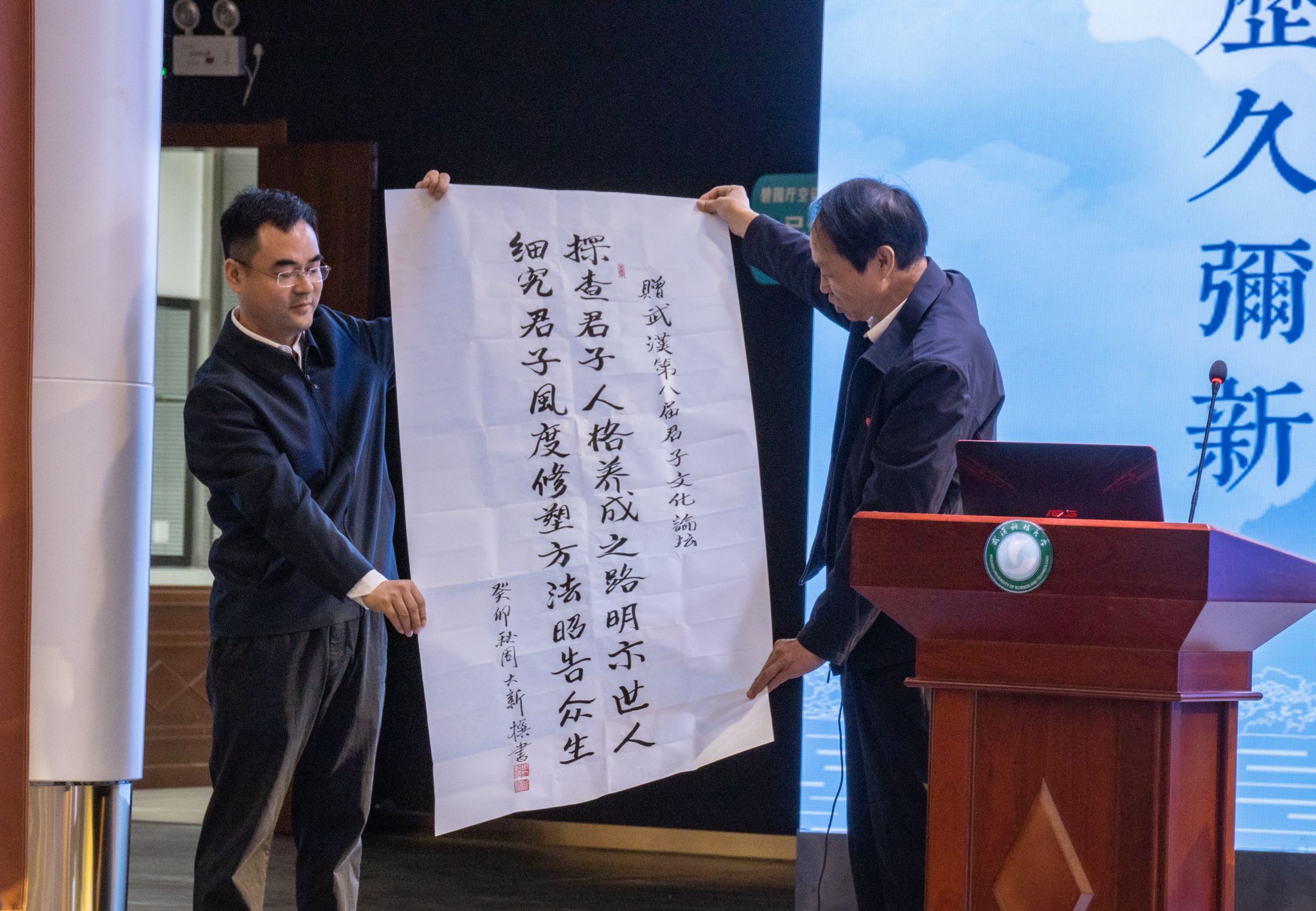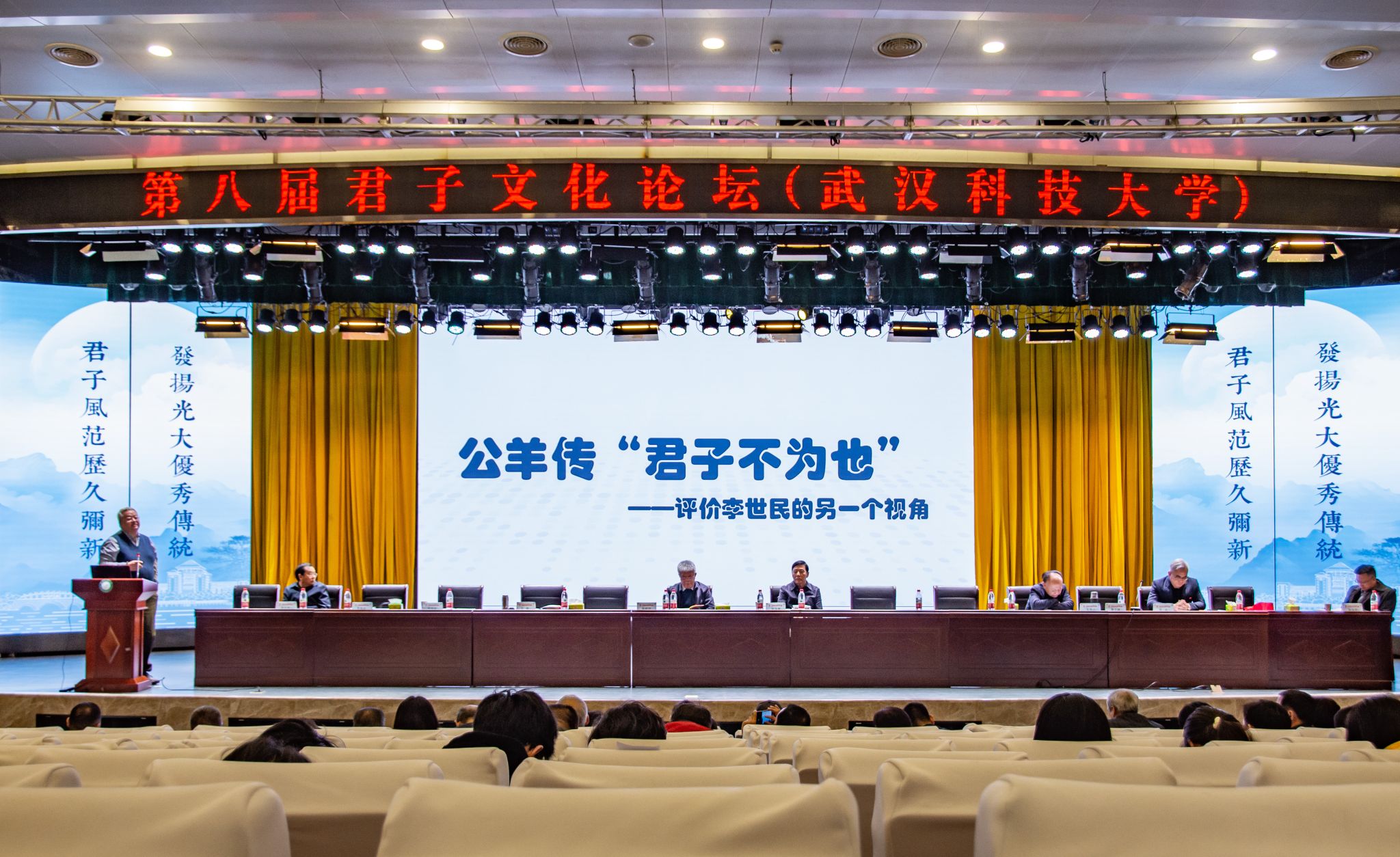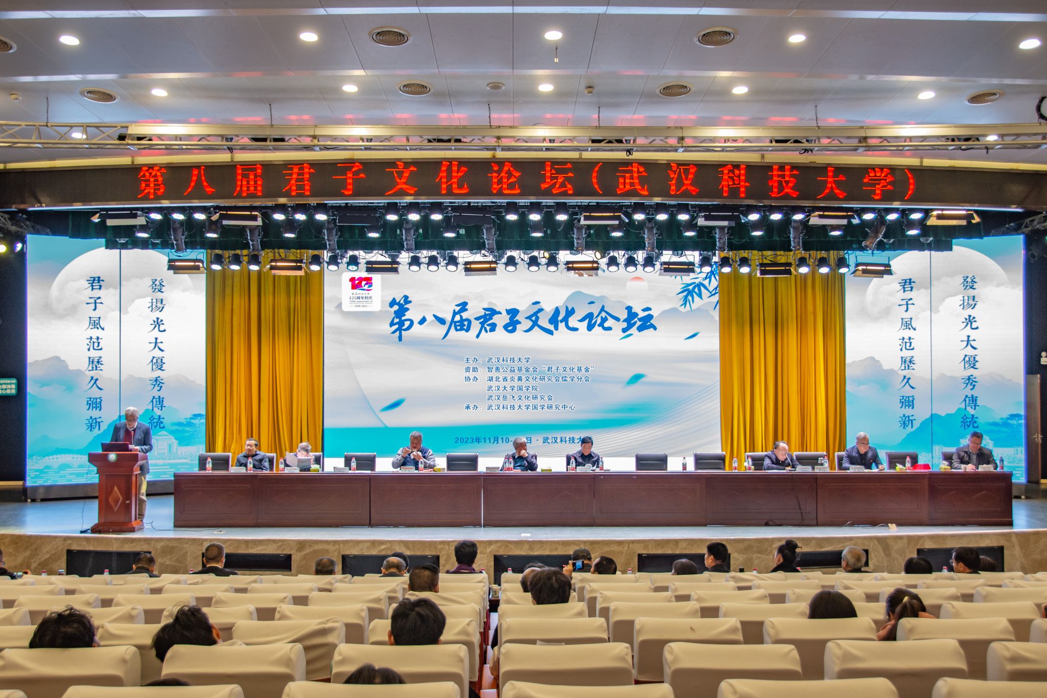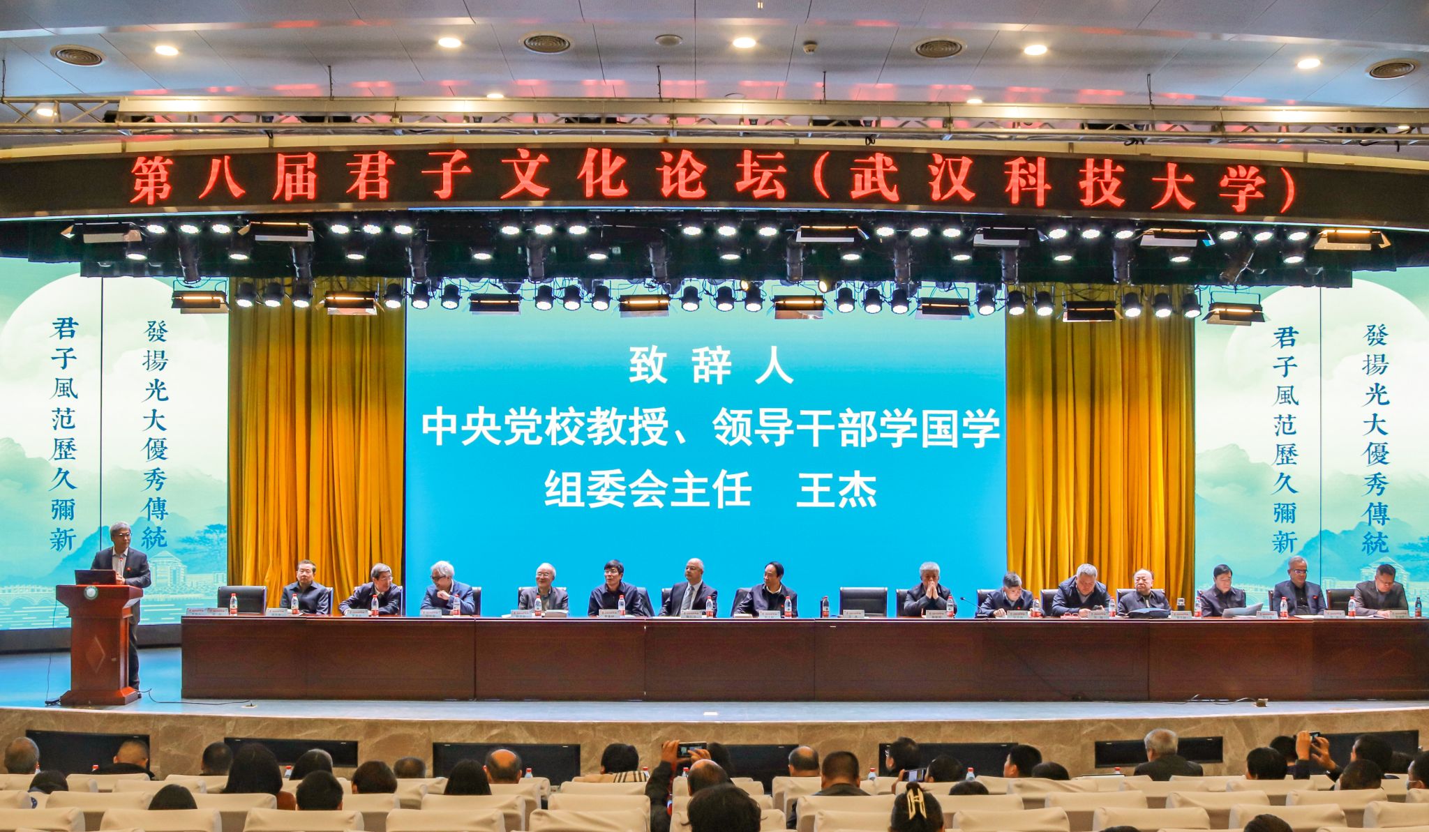 君子风范历久弥新,发扬光大优秀传统。11月11日,第八届君子文化论坛开幕式在我校青山校区钢铁楼碧园会堂召开,本次论坛讨论的主题为“君子文化的知与行”。来自全国高校、科研院所、君子文化研究机构的专家学者和我校师生300余人齐聚一堂,共话君子文化传承与创新。校长倪红卫,光明日报社原副总编辑李春林,著名作家周大新,中央党校教授、中国实学研究会会长王杰出席开幕式并致辞。校党委常委胡剑主持开幕式。