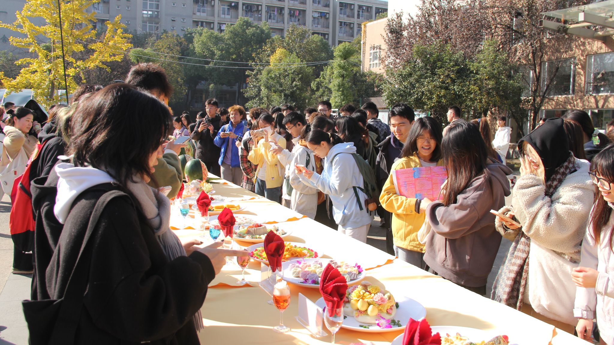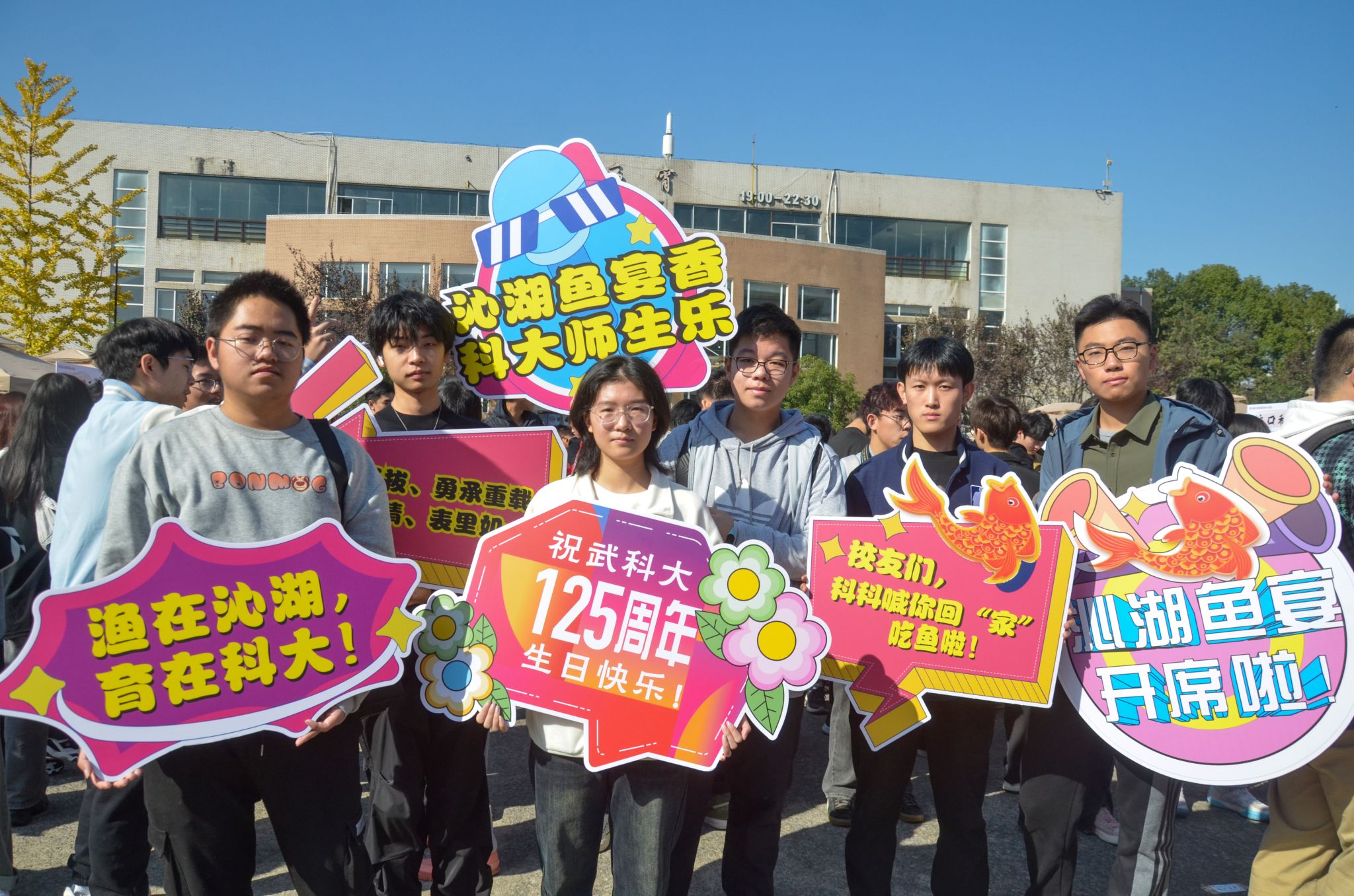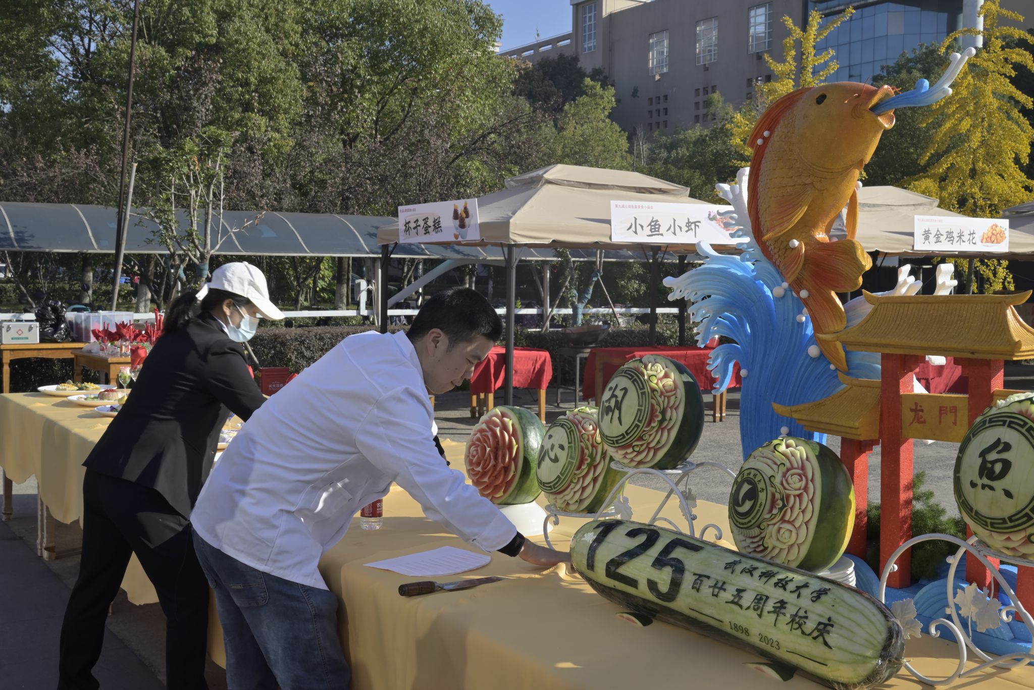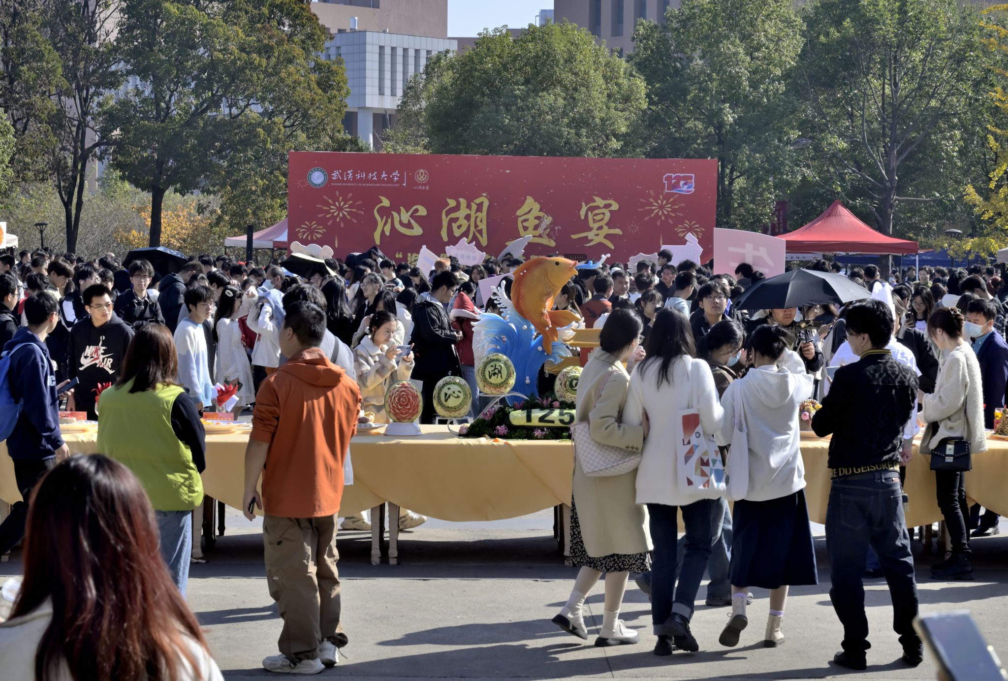 11月21日,我校在南苑食堂广场举行了第九届沁湖鱼宴。本届沁湖鱼宴恰逢建校125周年校庆,校党委书记徐雁冰,校长倪红卫,党委副书记孙国胜,副校长沈季伟出席开幕仪式。党委副书记孙国胜同副校长沈季伟一起为新版校徽,沁湖主题文化标识和校园文化系列丛书揭幕。并为校徽及文化标识设计者,艺术与设计学院副教授王伟老师颁奖。在校长倪红卫致辞后,校党委书记徐雁冰为今年的捕鱼王颁奖并宣布第九届沁湖鱼宴开幕。沁湖鱼宴是我校本着"共建美丽校园,共享建设成果"这一理念,2015年开始精心打造的校园文化品牌,全校师生来到鱼宴现场贺校庆、品鱼宴、逛庙会,在一年一度的“沁湖鱼宴",不仅能吃鱼,更能亲手捕鱼、烹鱼。(高文帅 韩子萱)