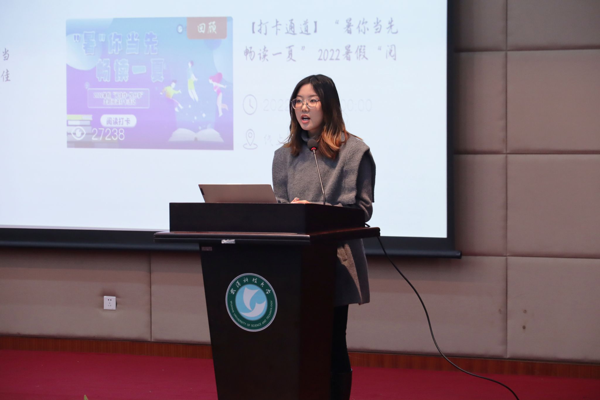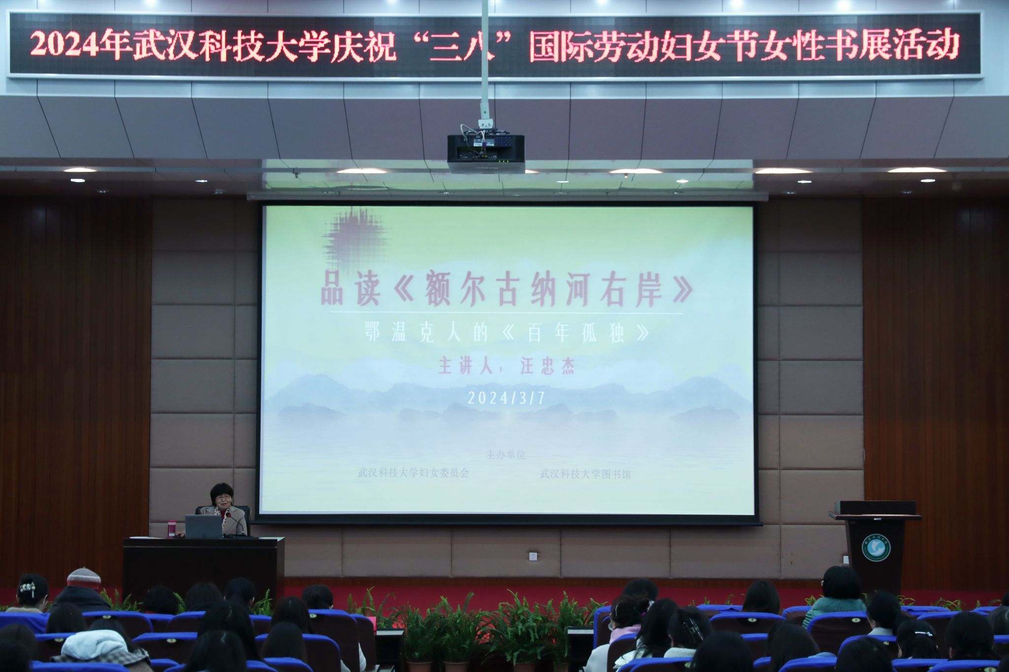 3月7日上午九点,我校在校图书馆崇实会堂开展庆“三八”女性书展专题活动,由汪忠杰带领观众品读《额尔古纳河右岸》-鄂温克人的《百年孤独》,学生朱荣分享《额尔古纳河右岸》跨“阅”学科,读破局限,多名校领导、负责人、女教职工代表与女大学生代表均出席参加,许多同学也来到现场参与互动。