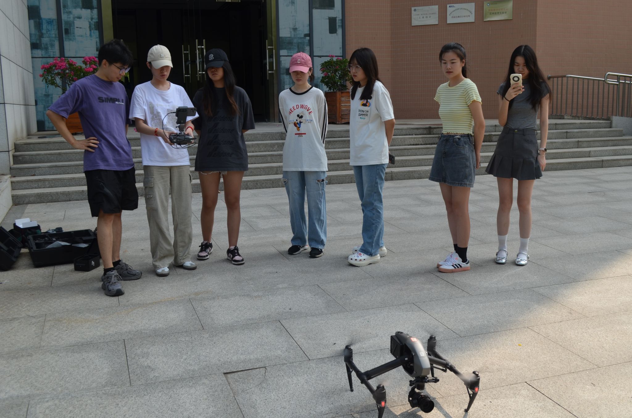 9月5日在教七楼215办公室,罗斌老师对着电脑为参加的学生讲解软件的使用。紧接着前往楼下草坪处讲解全站仪(全站型电子速测仪)和无人机的使用,学生们分为两组进行学习,全站仪由罗斌老师讲解,无人机由研究生李婧维讲解。(王翔宇)