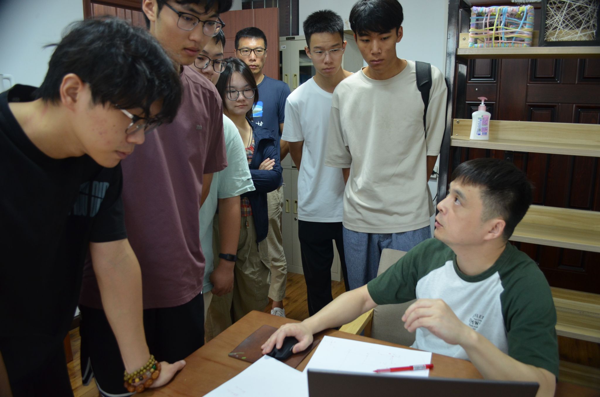 翁雯霞老师对单体组同学进行测量前指导 李芳摄
