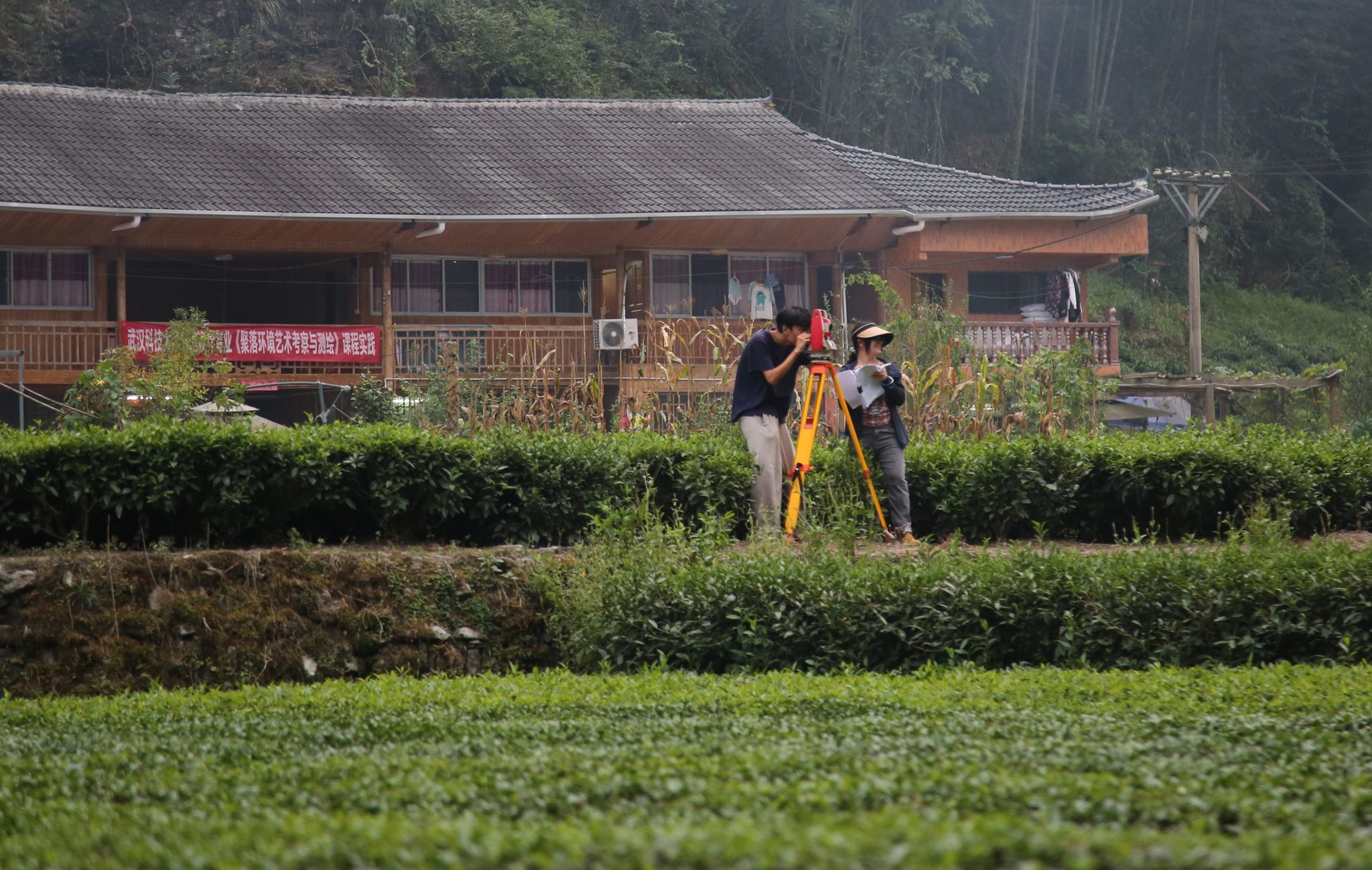 李一霏老师、许洪超老师在对总图组学生进行勘测前指导 李芳摄