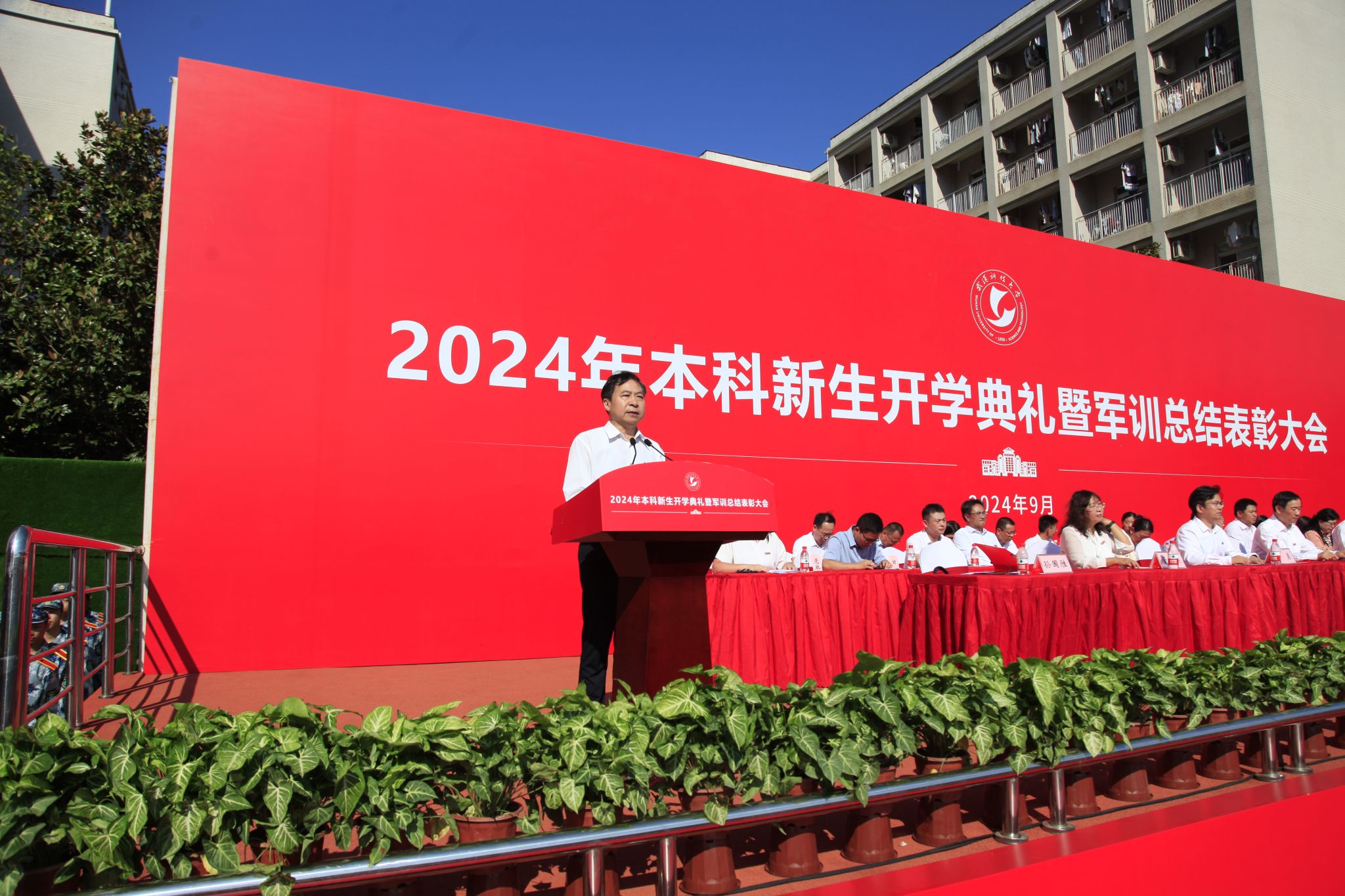 9月29日上午,我校于南苑操场举行2024年本科新生开学典礼暨军训总结表彰大会,现场同学们热情洋溢,情绪高涨。校党委书记徐雁冰,校长倪红卫,党委副书记孙国胜,副校长吕勇、马腾、董丽杰,党委常委刘时新,空军预警学院大队长张力以及学校各职能部门、各学院领导出席本次大会。由党委副书记孙国胜主持大会。