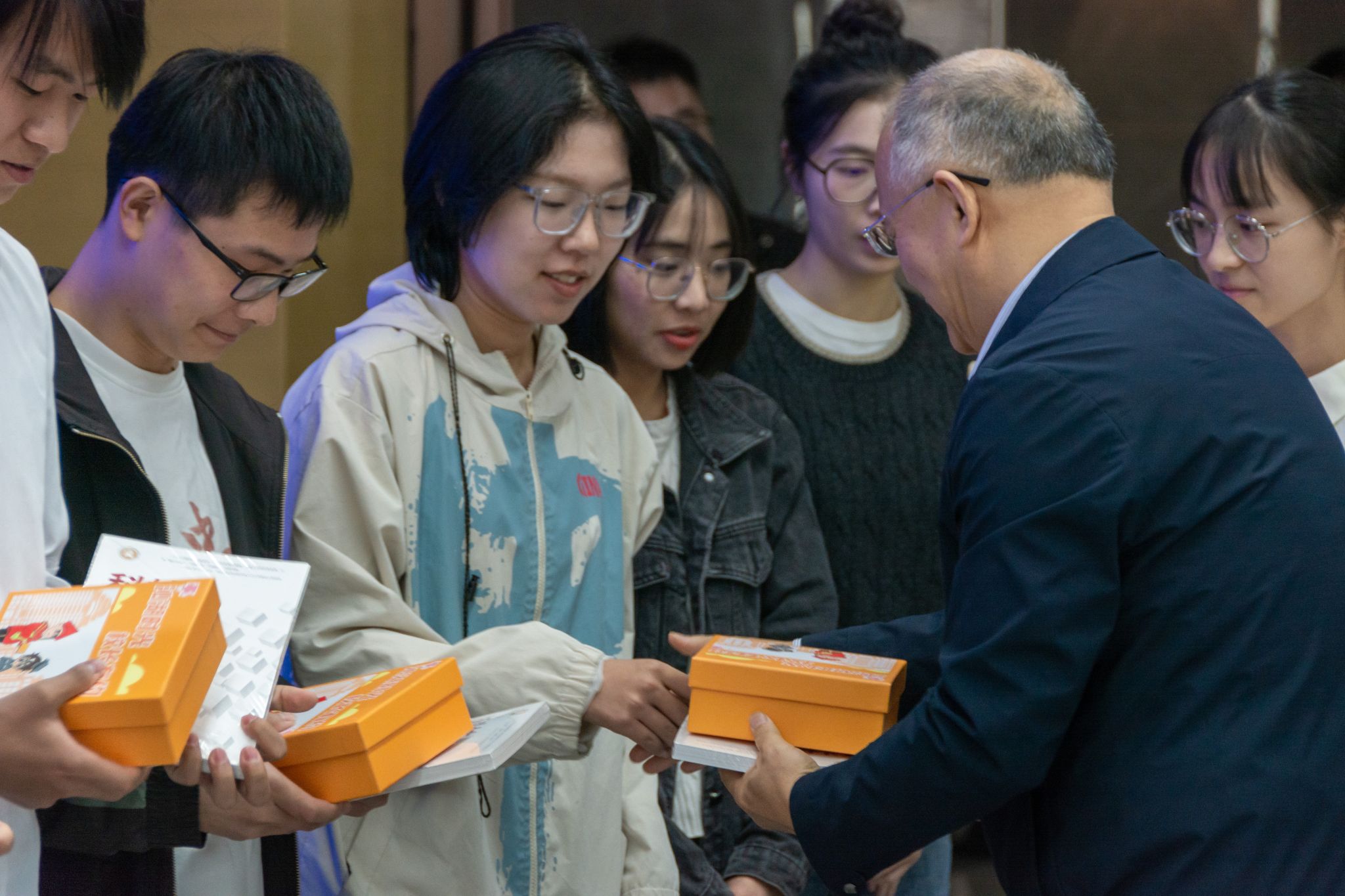 倪红卫校长为研究生代表们赠送书籍 吴磊摄