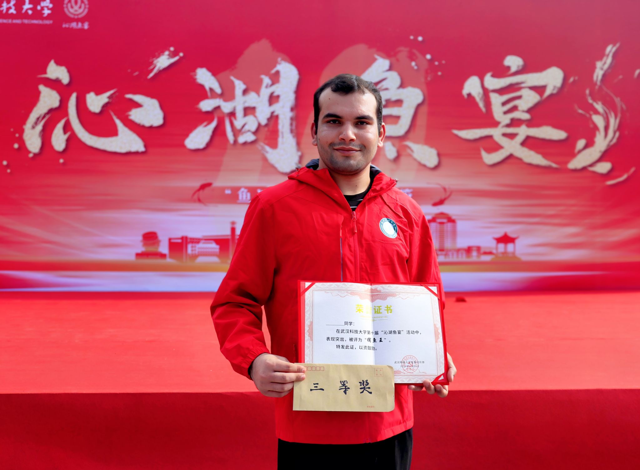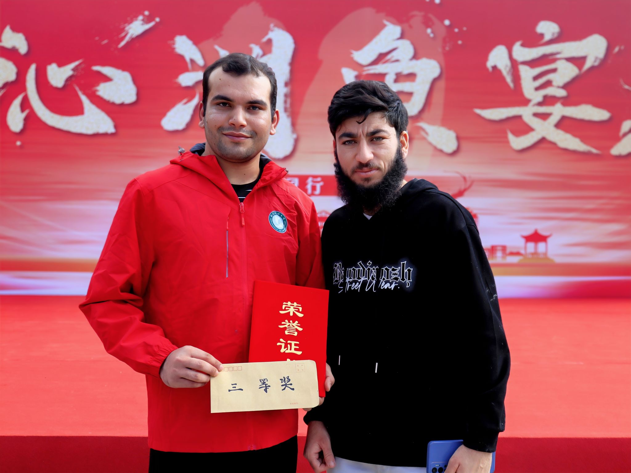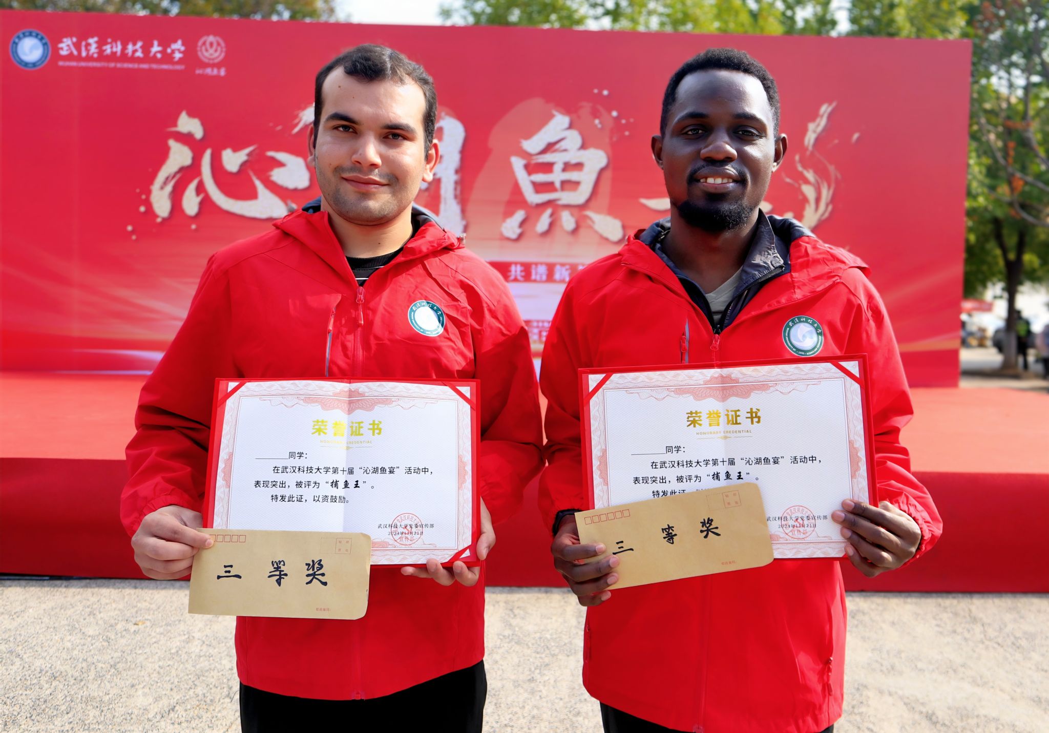 校党委书记徐雁冰和本届鱼王合影 高文帅摄