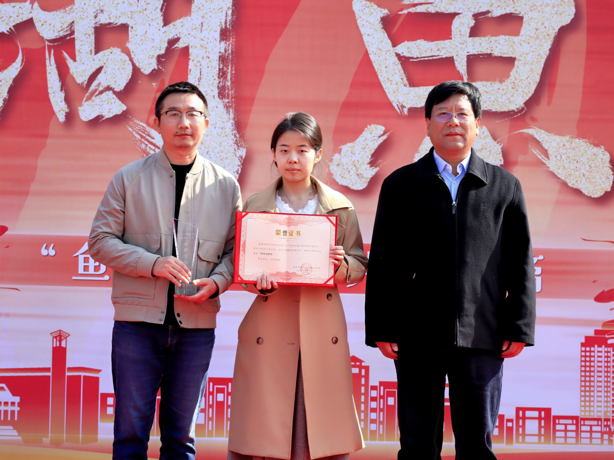 校党委副书记沈季伟为学校新视觉形象识别系统获奖者颁奖 杨欣怡摄