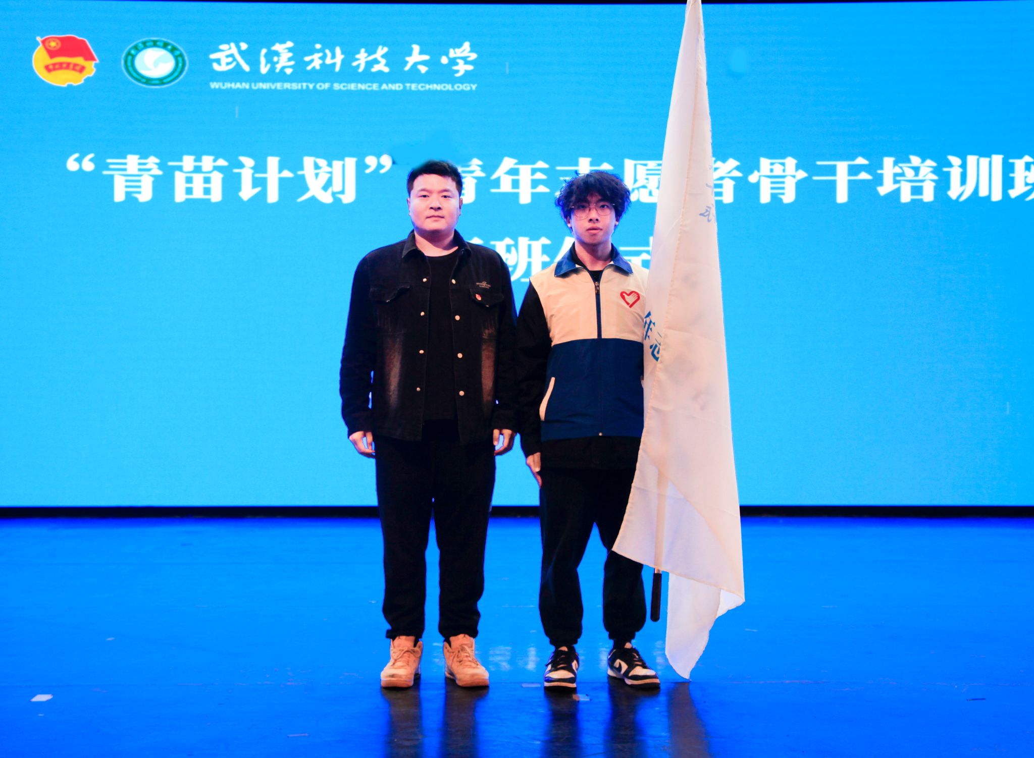 校团委副书记张鸿彬为培训班授旗 吴颖摄