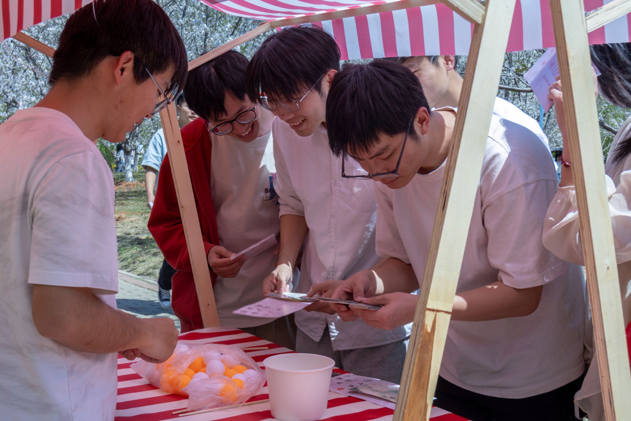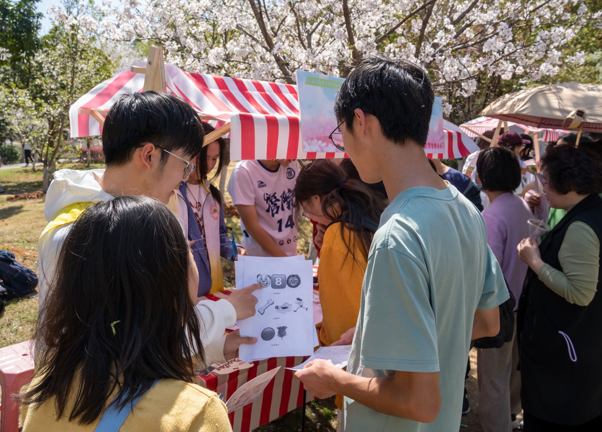 学生体验樱花节游戏 赵飞雪摄