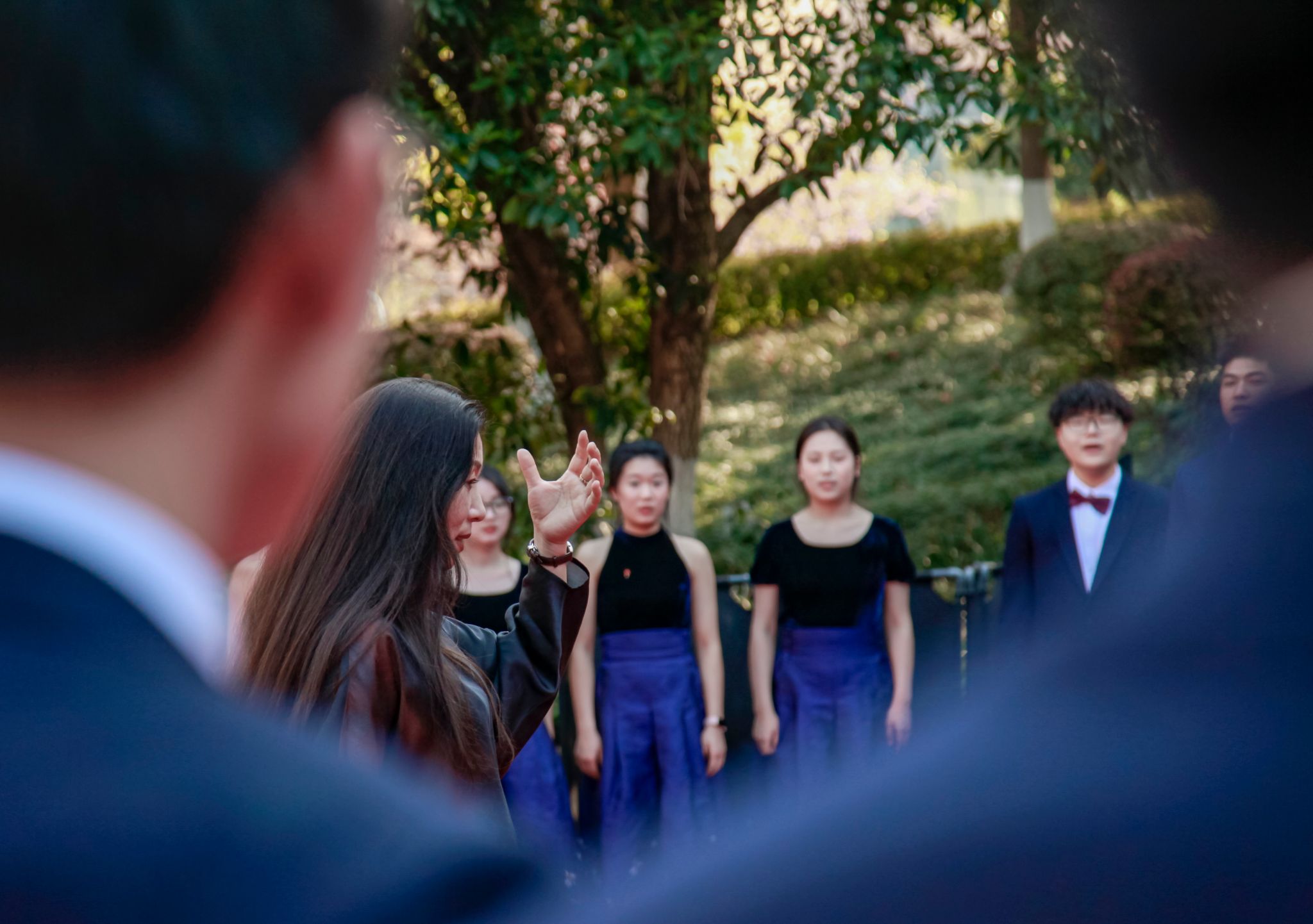 樱花大道上的同学们 吴毅萌摄