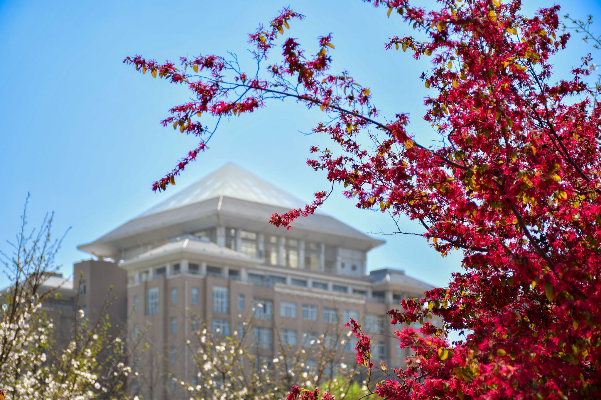 恒大楼与樱花 吴毅萌摄