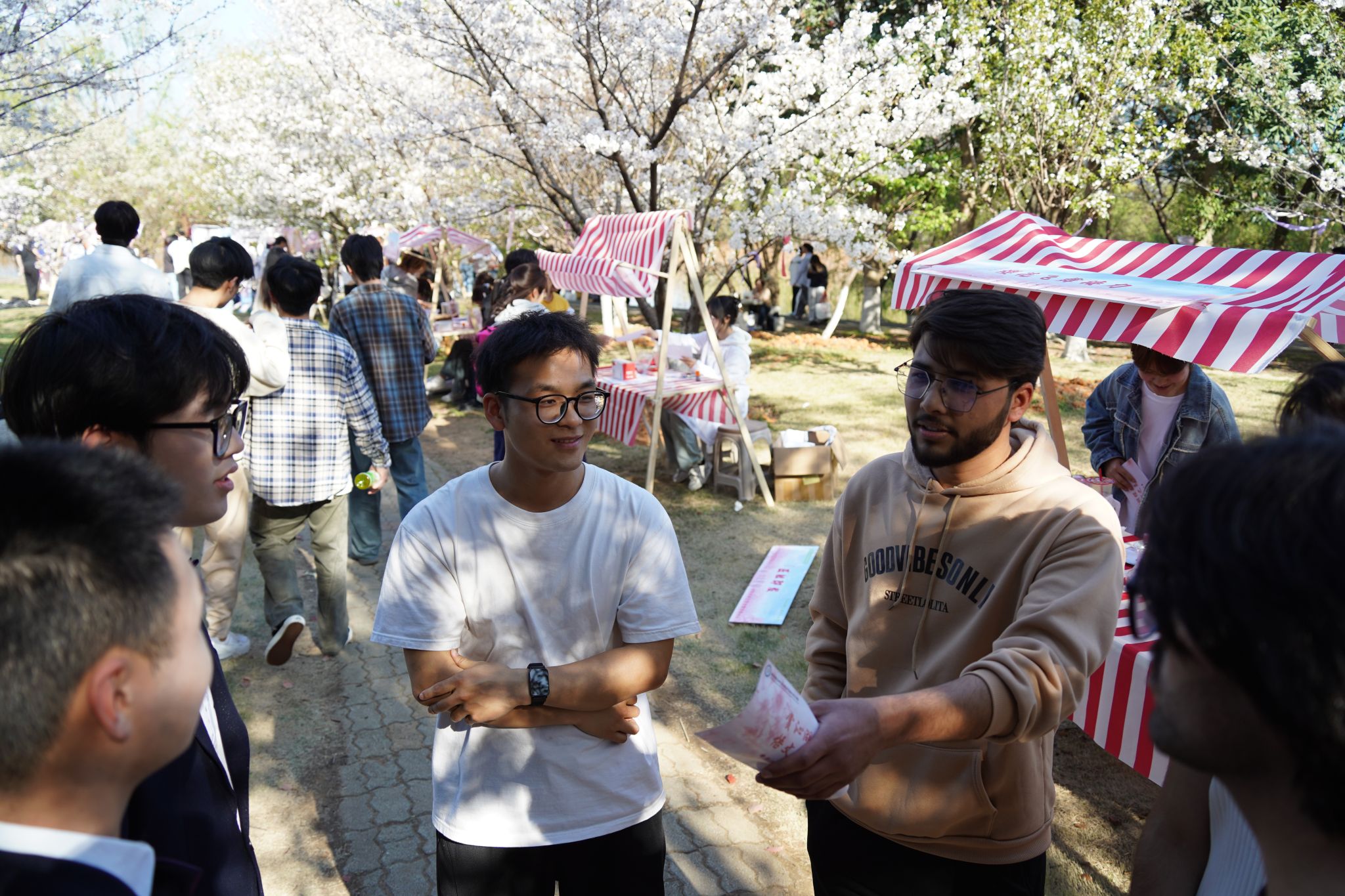 大艺团成员向留学生介绍樱花节 孙正恒摄